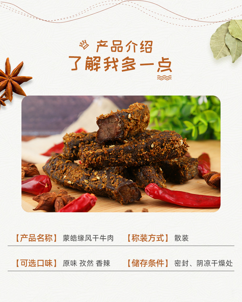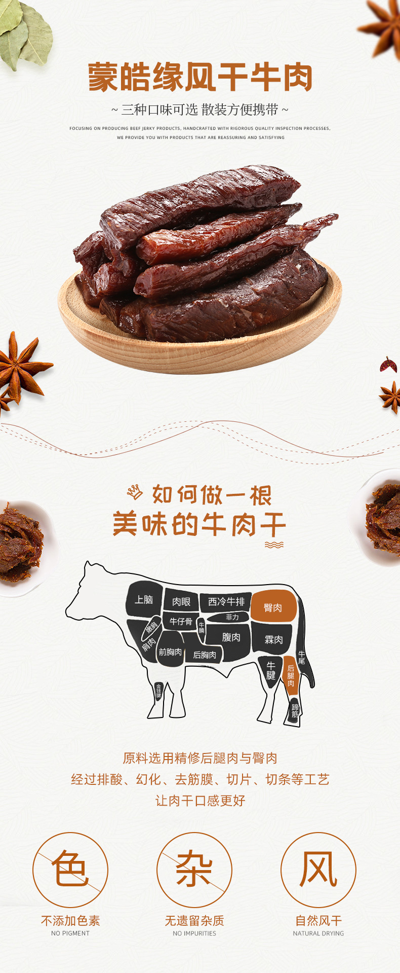 【肉质紧实有嚼劲!蒙皓缘风干牛肉】健身人士常备,散装,分量足,手撕口感,香气四溢,旅行的休闲零食,烘烤牛肉干通辽特产手撕牛肉休闲零食健康