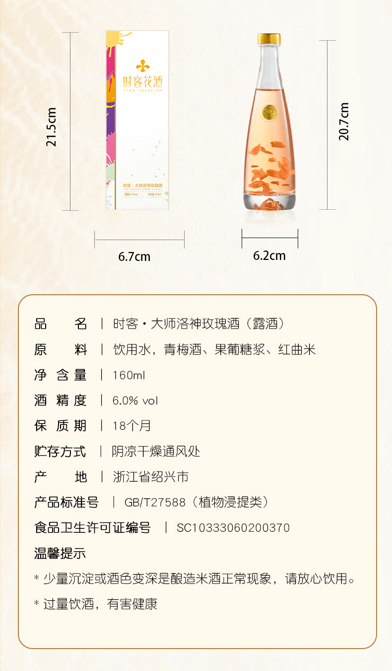 时客·大师金渐桂花酒(露酒) 160ml 桂花/茉莉/洛神玫瑰花 三款 微醺颜值好酒