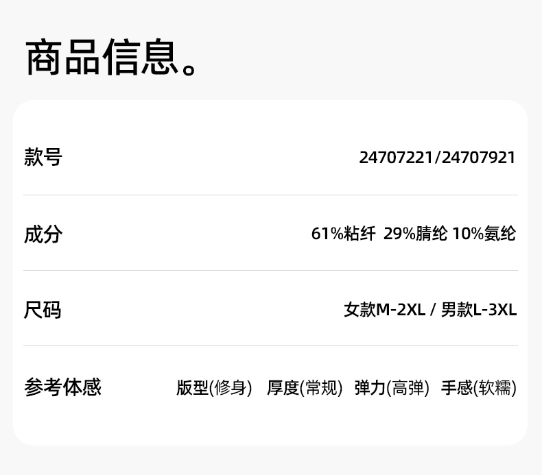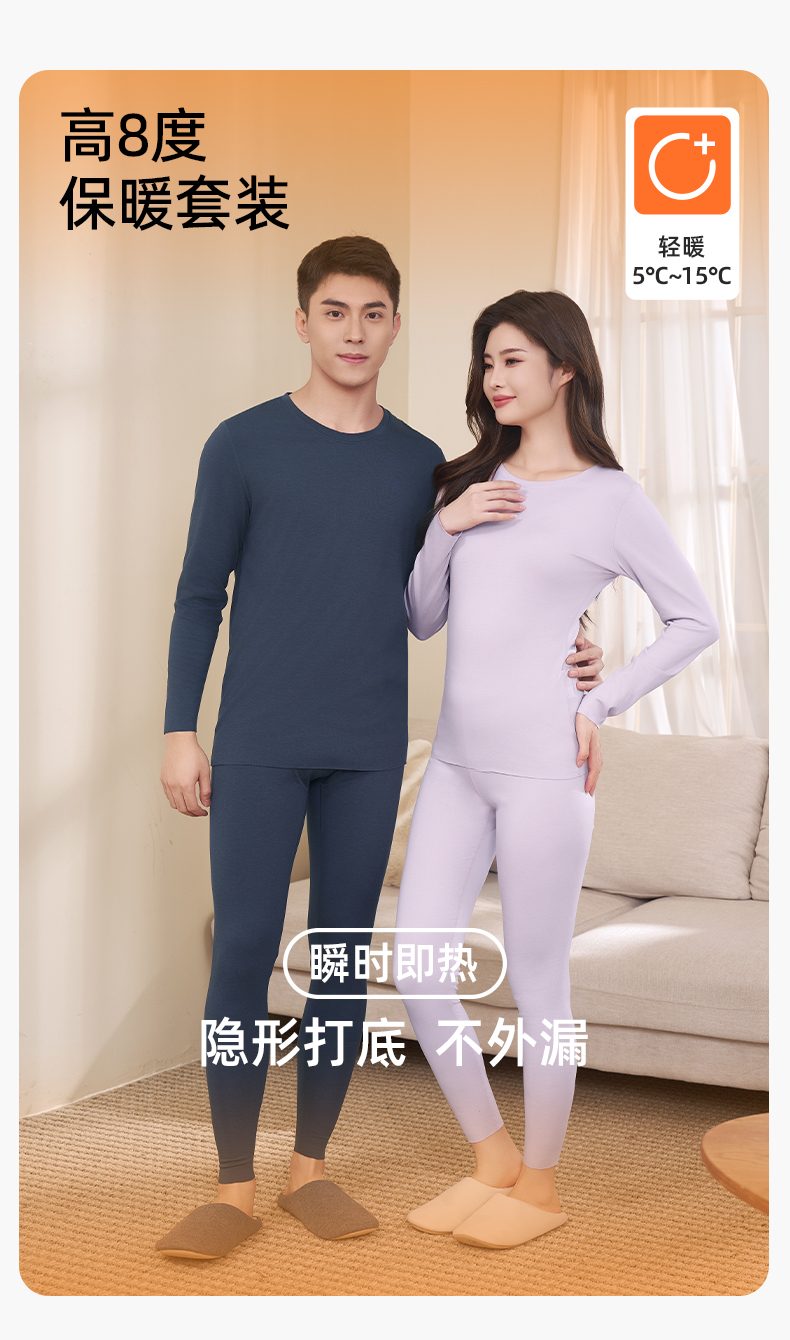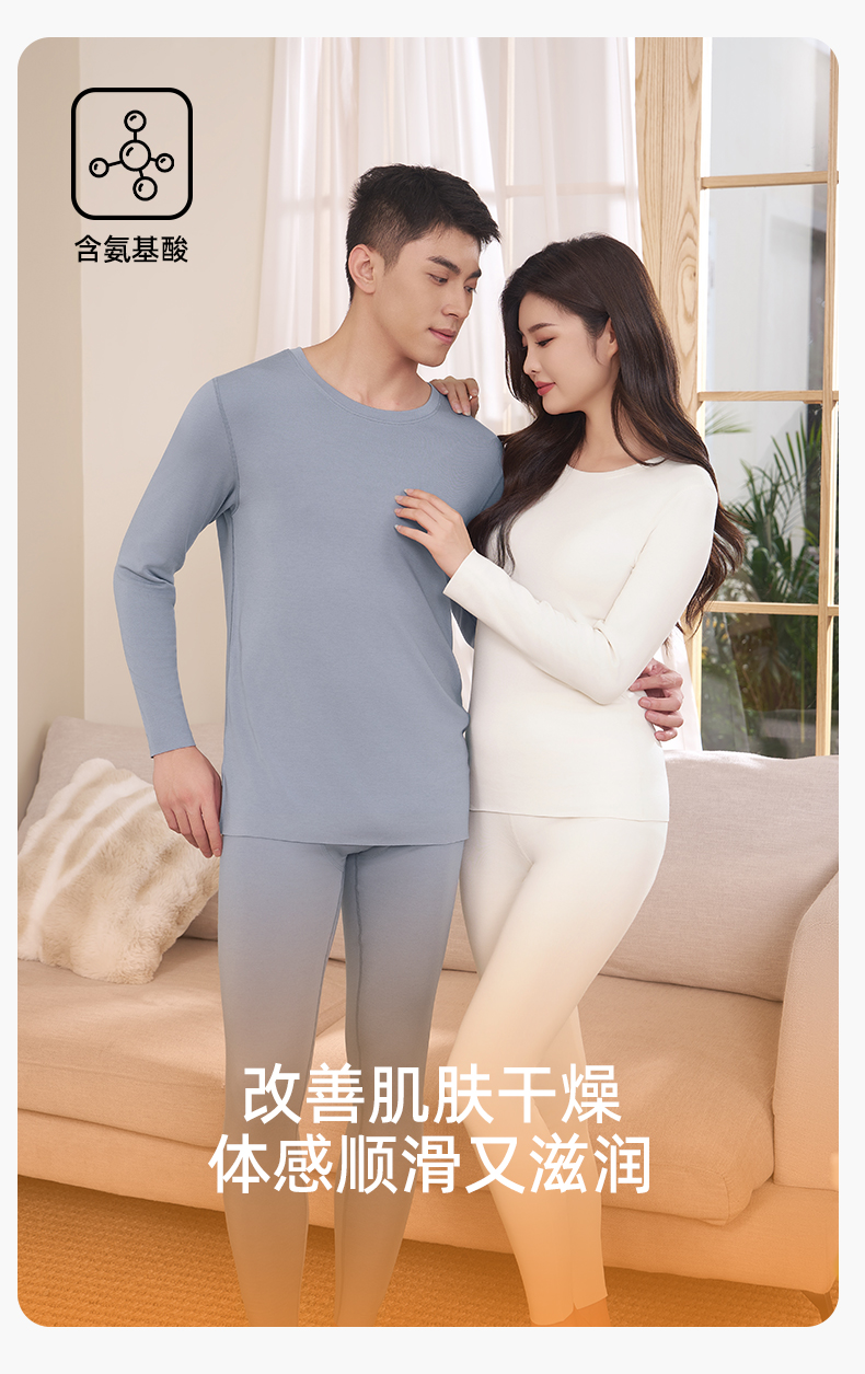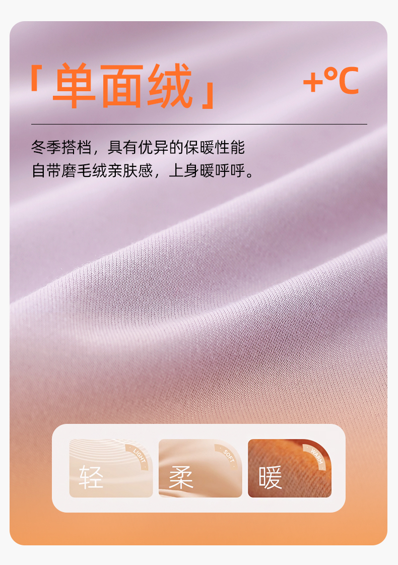 【高8度】熳洁儿 圆领打底保暖情侣款单面磨毛含氨基酸商场同款260g24707221/24707921