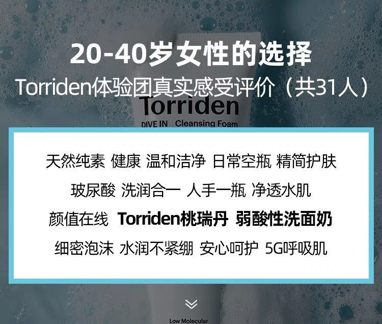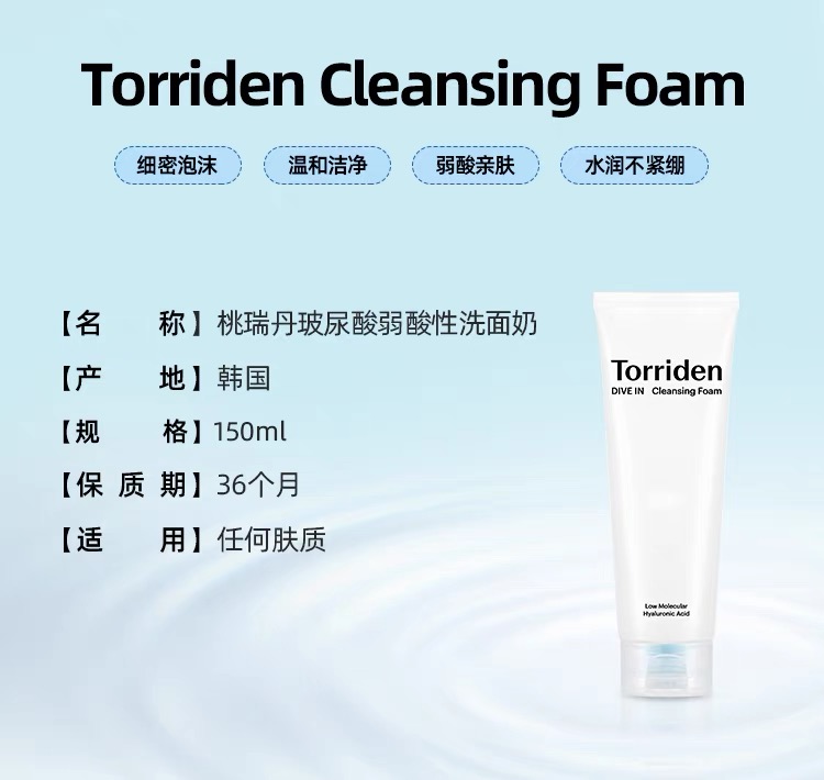 韩国Torriden桃瑞丹洗面奶150ml 低分子玻尿酸氨基酸弱酸性清洁保湿控油