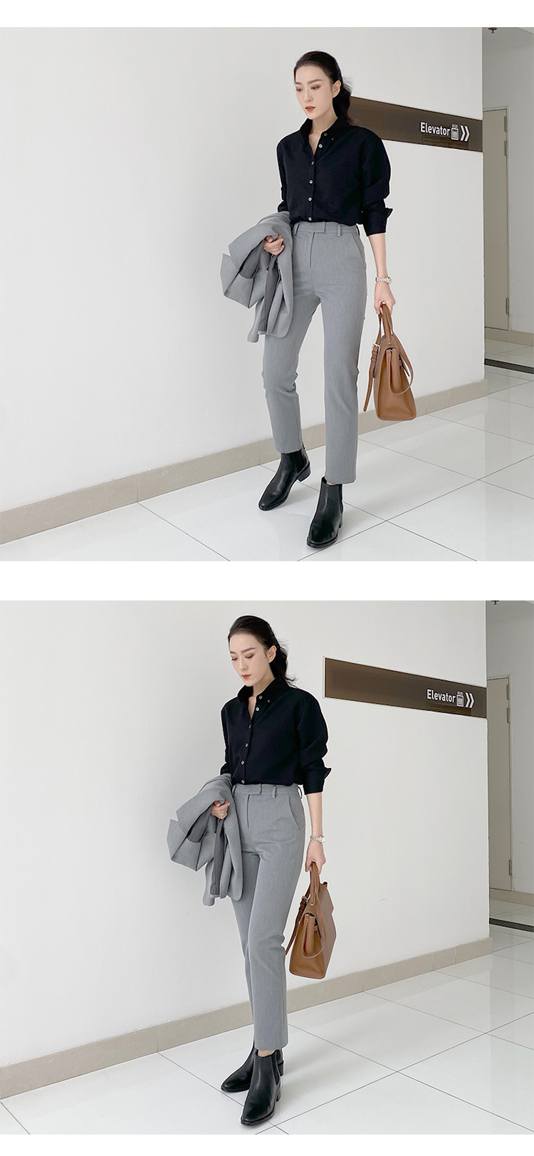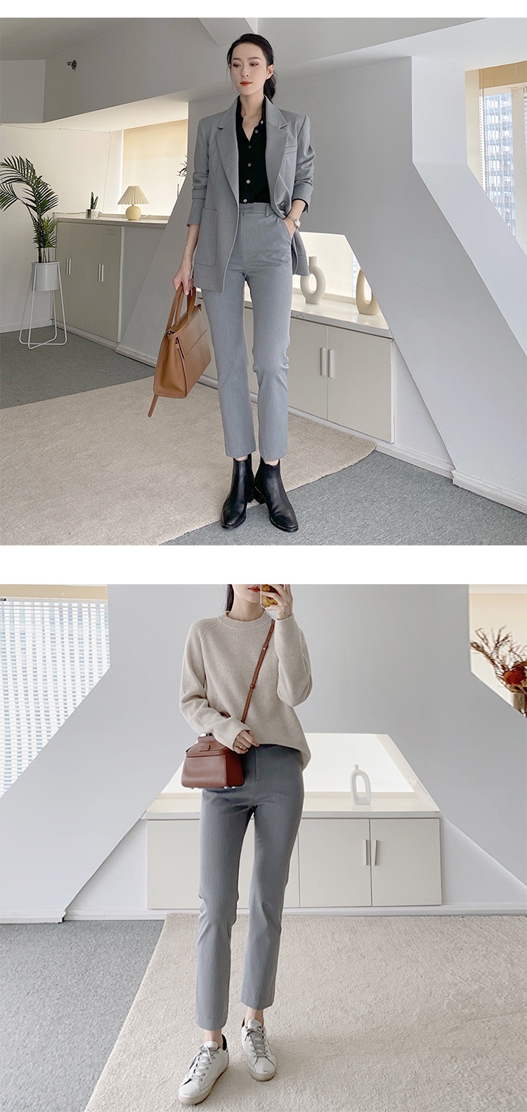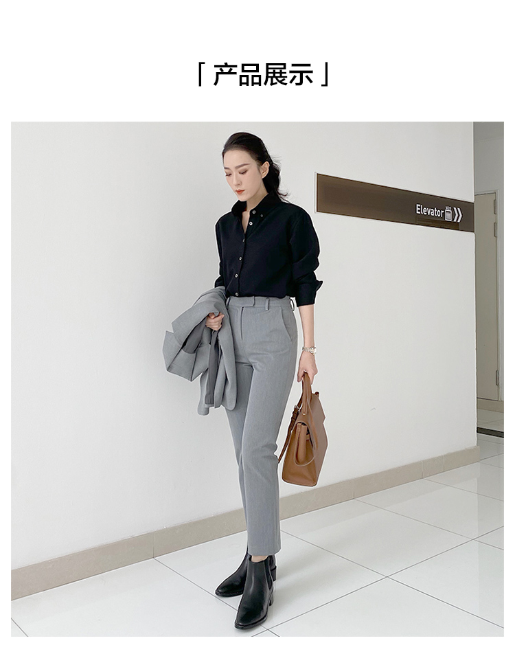 “新晋神裤” 灰色高腰休闲直筒九分西裤