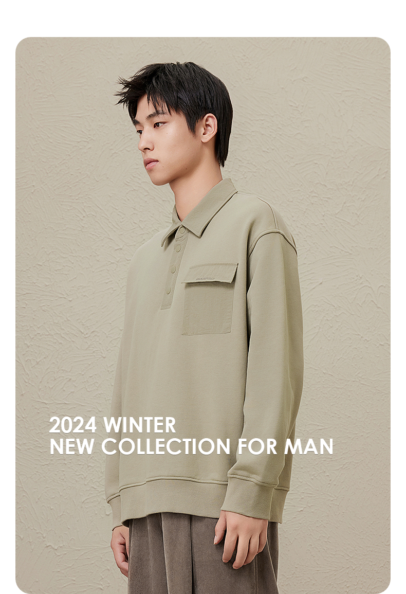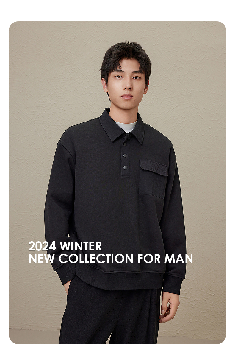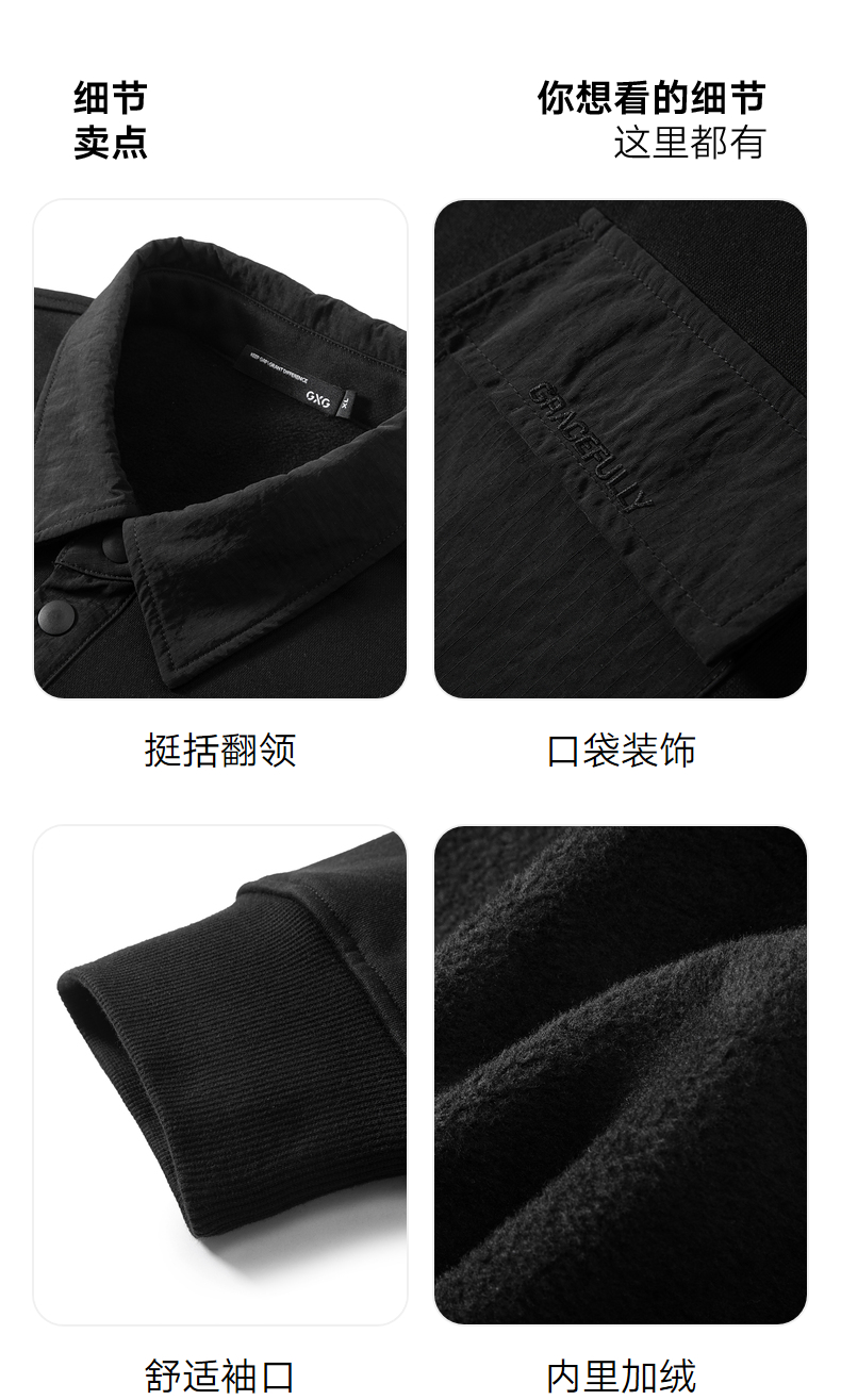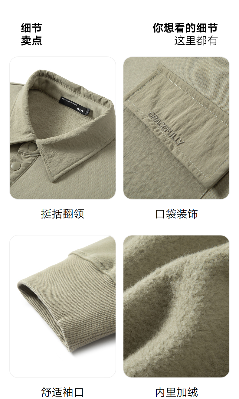 GXG男装 秋冬热卖GXG男士内里加绒简约时尚口袋装饰翻领卫衣男