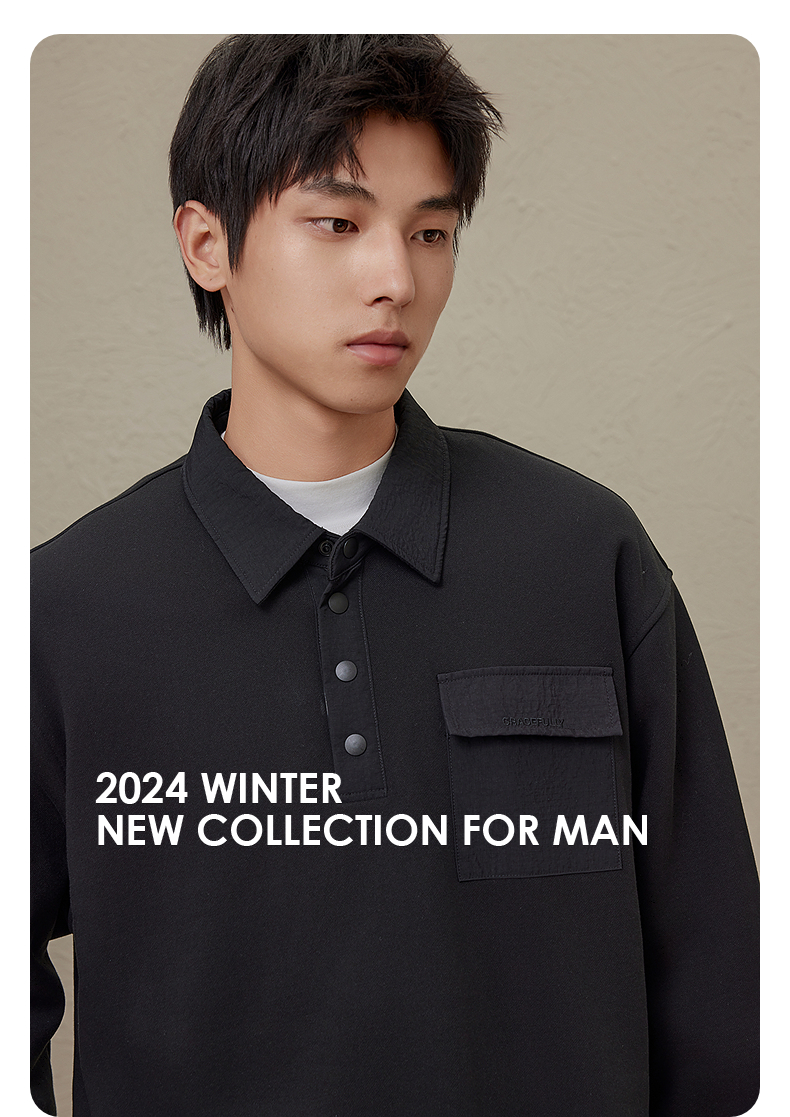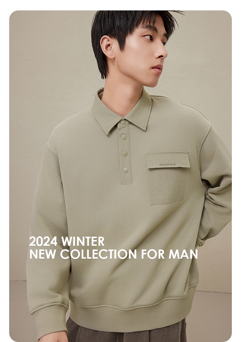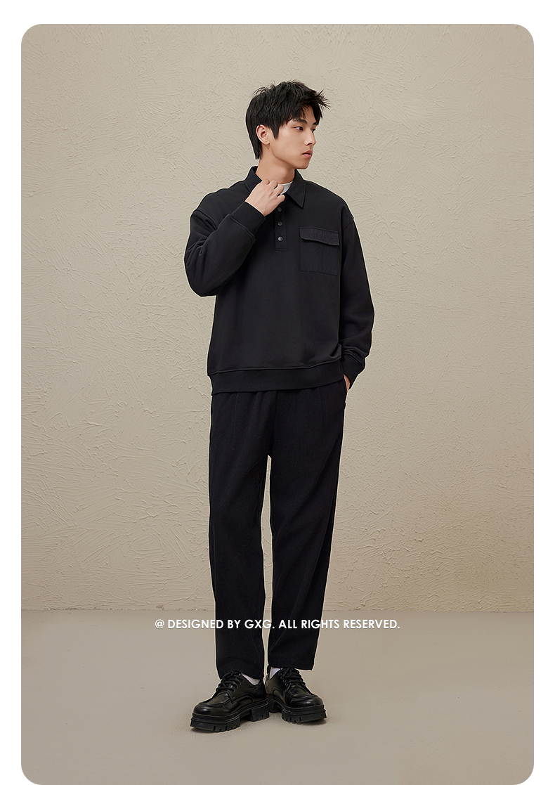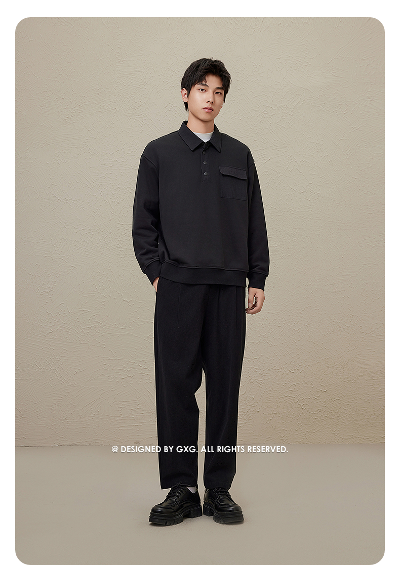 GXG男装 多色基础设计宽松时尚翻领卫衣男 秋季热卖G24X313010