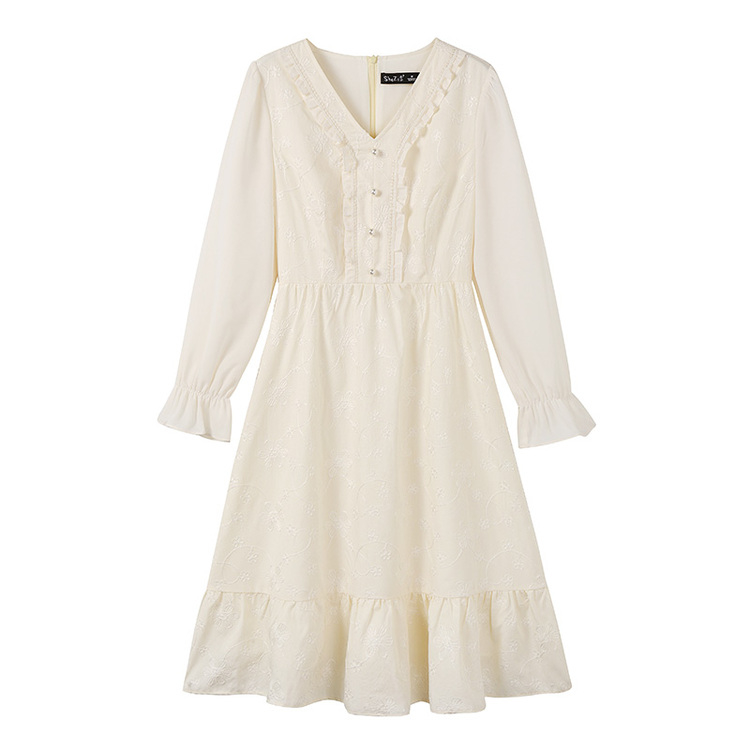 2025年春季新款大码女装甜美气质裙子胖妹妹花边V领连衣裙9951892763