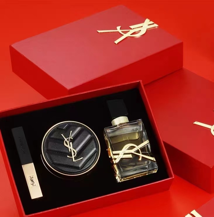 【全球购】圣罗兰浮雕小金条香水气垫礼盒(#1966小金条口红2.2g+黑气垫14g+自由之水50ml)