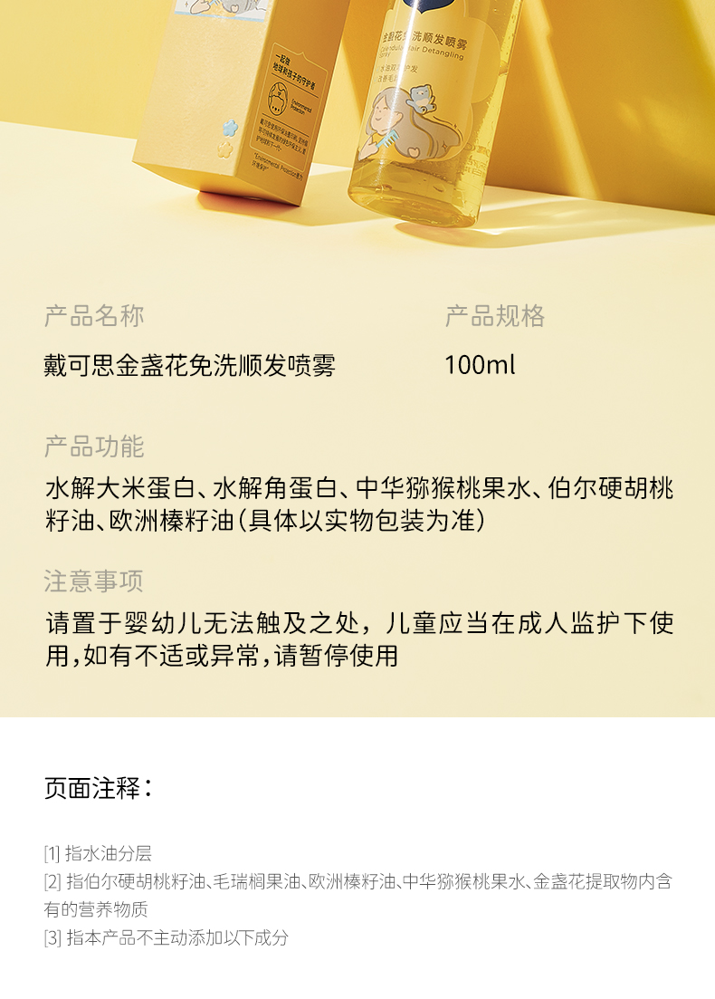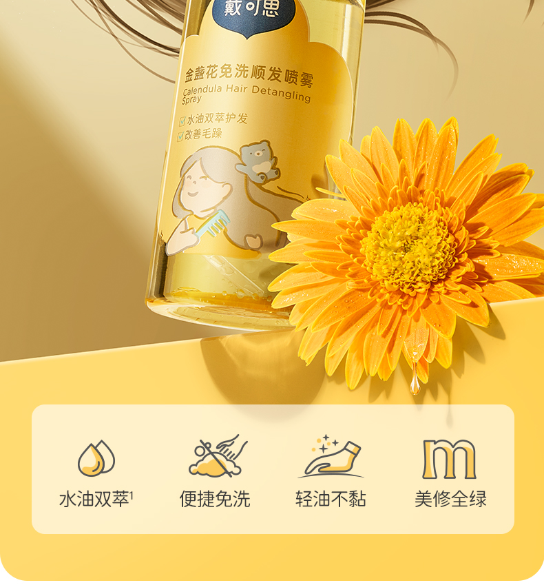 儿童顺发喷雾100ml*2| 戴可思金盏花顺发喷雾摇一摇顺滑发丝 水油双萃护法 改善毛躁