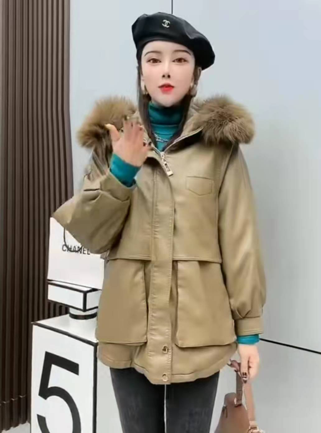 谦亿隆棉皮油,货号211152,小款设计,真皮毛领