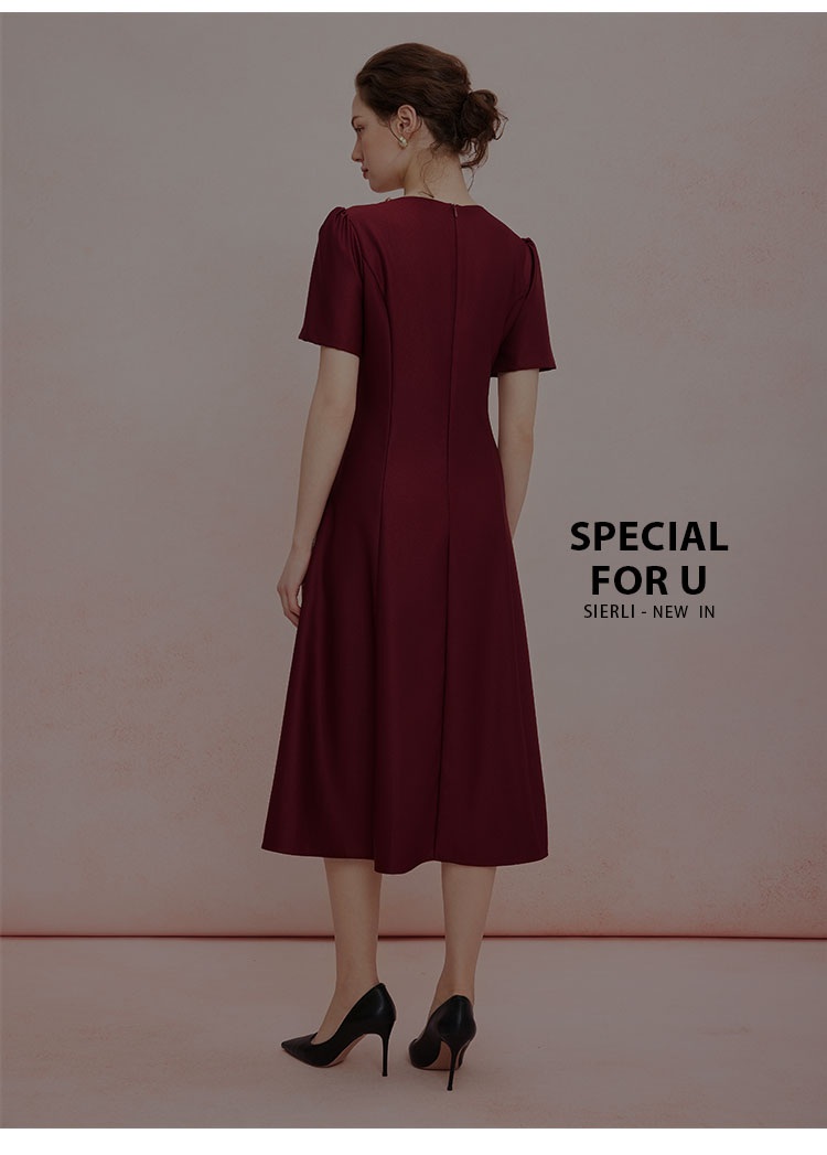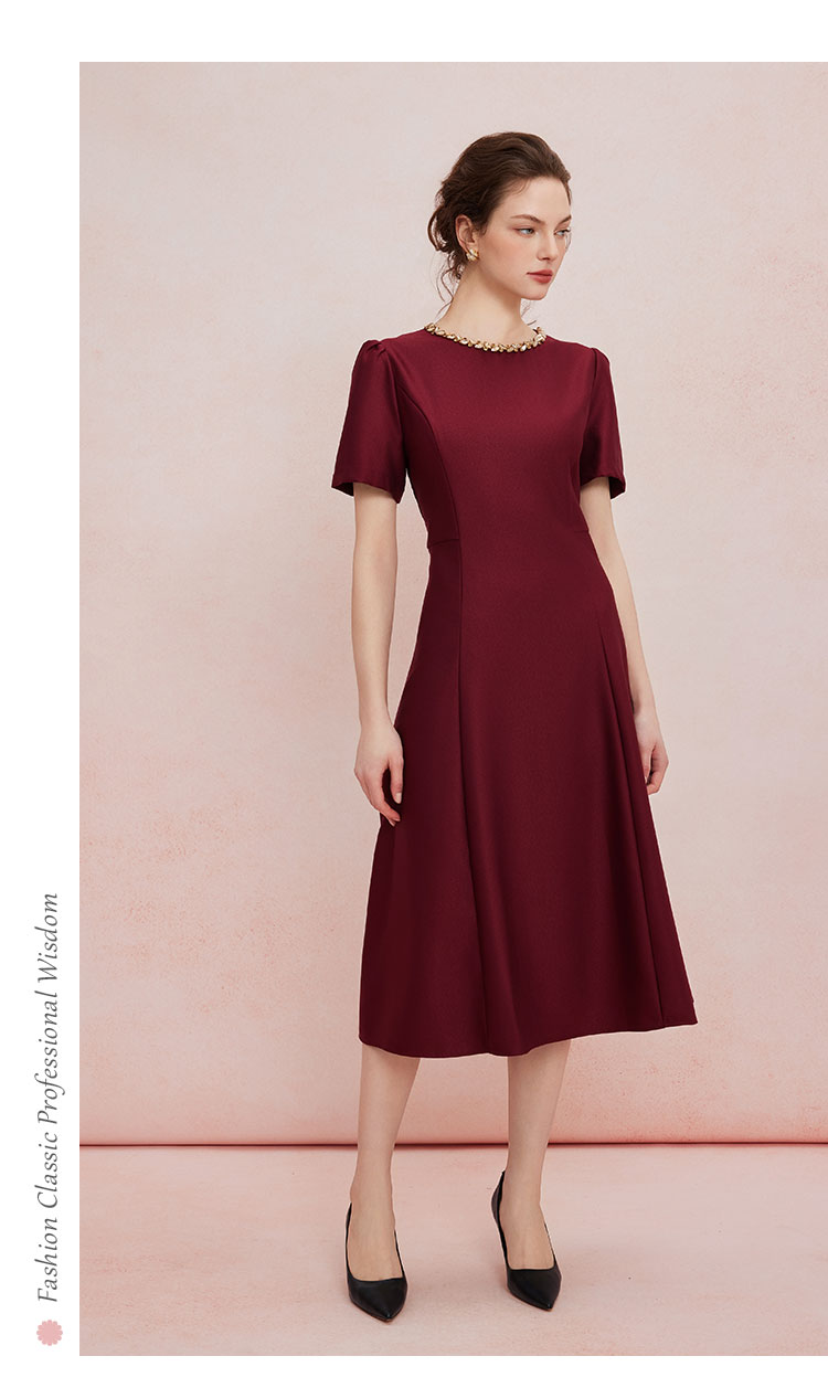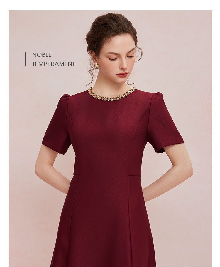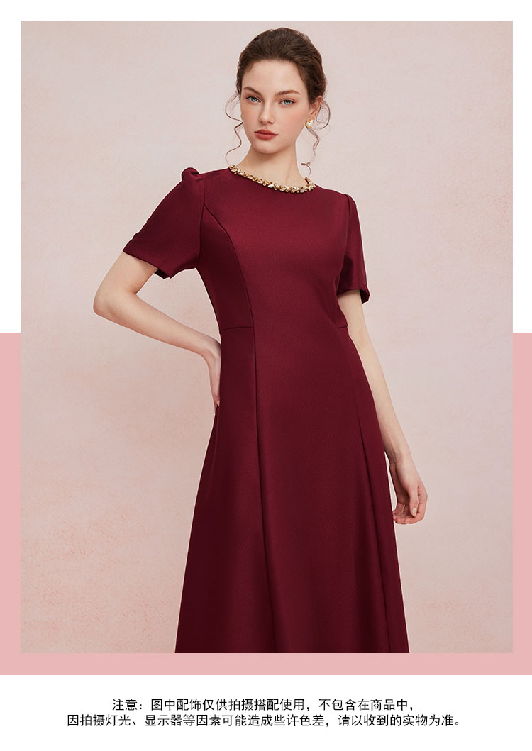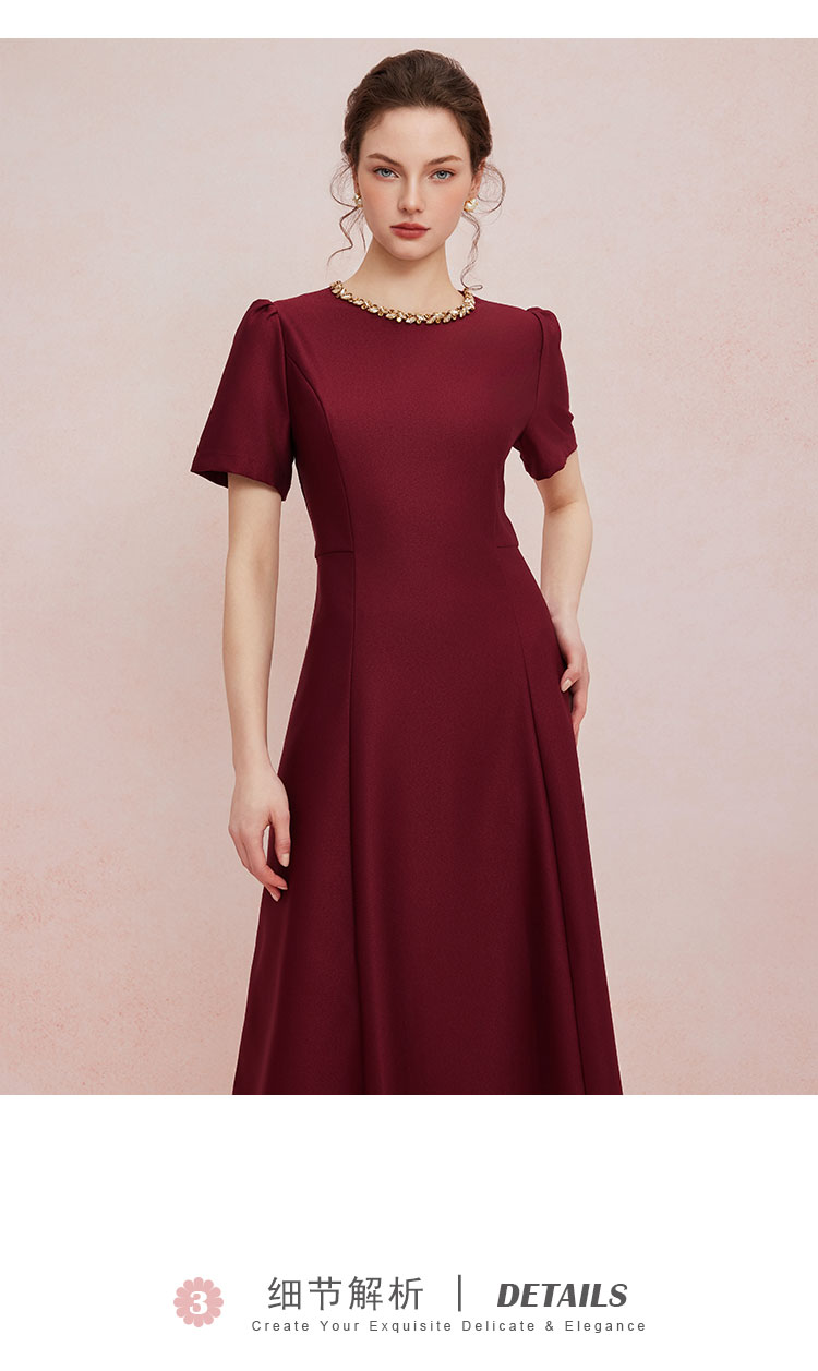 QF861斯尔丽2025夏季新款法式优雅丝毛收腰放摆显高显瘦浪漫钉珠连衣裙