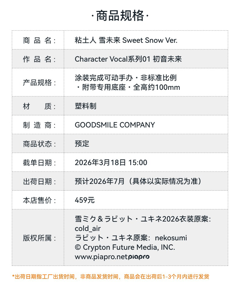 【GSC预售定金】粘土人 雪未来 Sweet Snow Ver. 官方限定