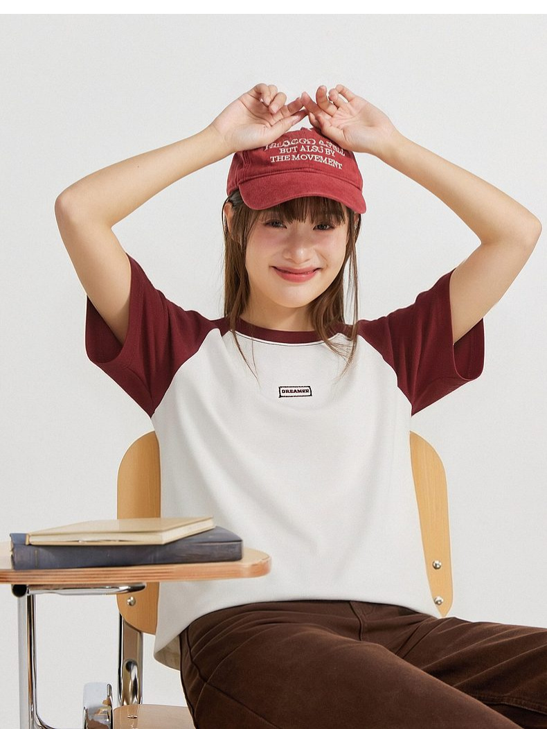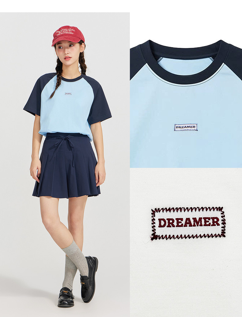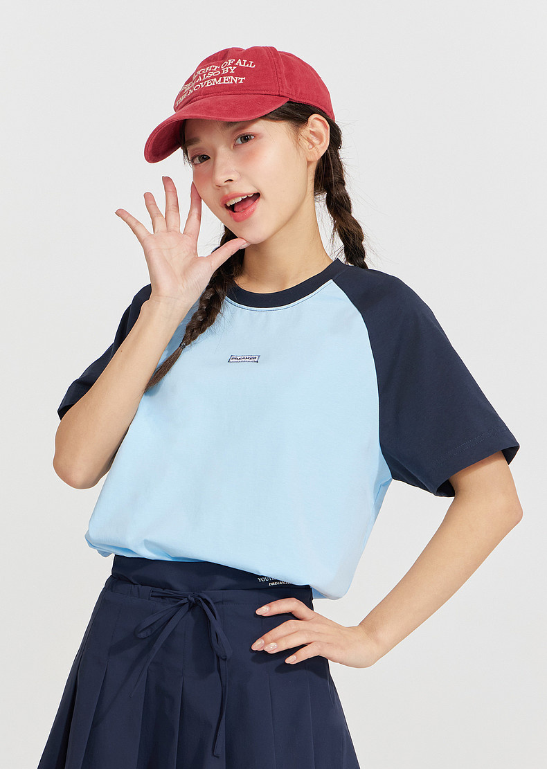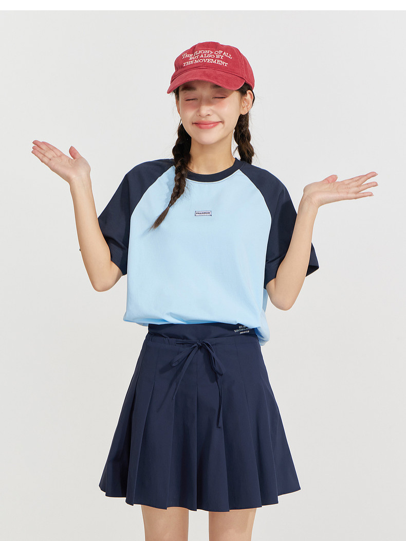 笛莎Deesha 2026年夏季新款青少年撞色插肩袖索罗娜原纱防晒吸湿速干T恤
