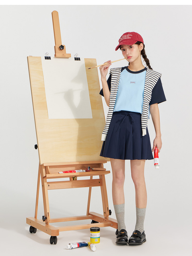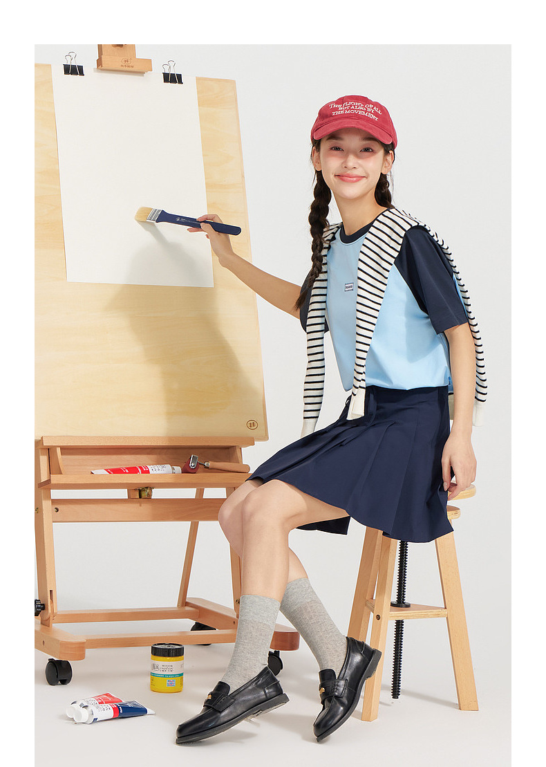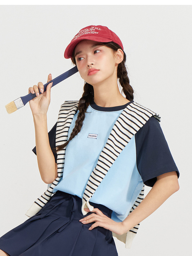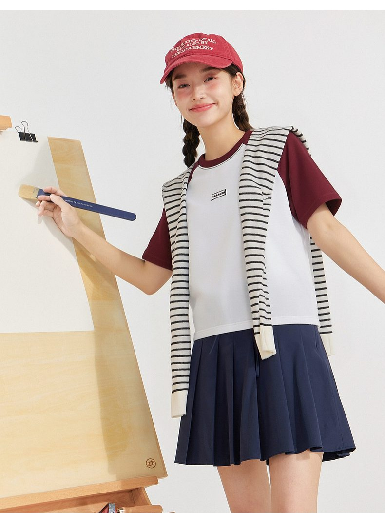 笛莎Deesha 2026年夏季新款青少年撞色插肩袖索罗娜原纱防晒吸湿速干T恤