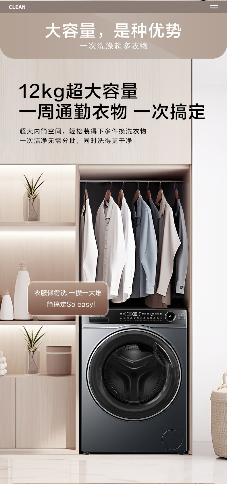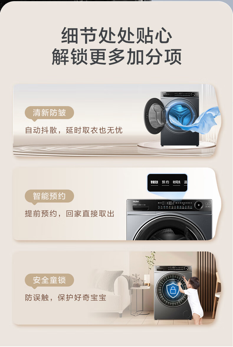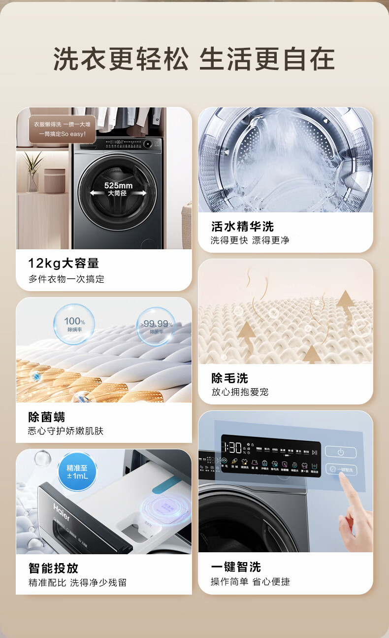 海尔(Haier)超越系列520 12KG大容量 活水精华洗 除毛洗 除菌螨 智能投放 一键智洗 XQG120-LDE520H