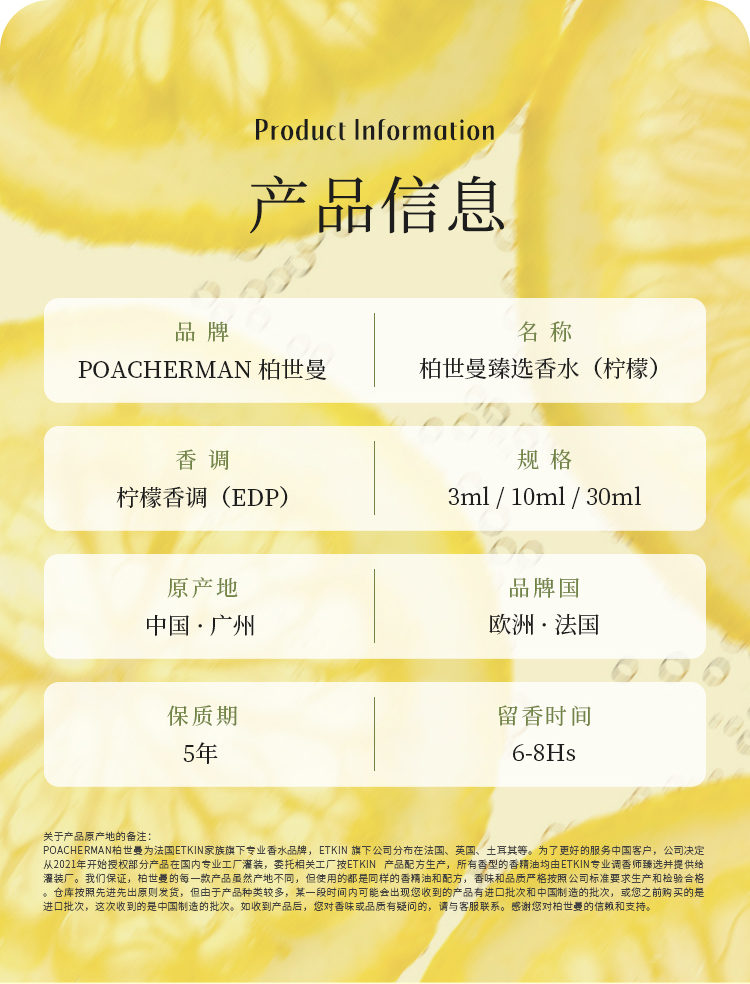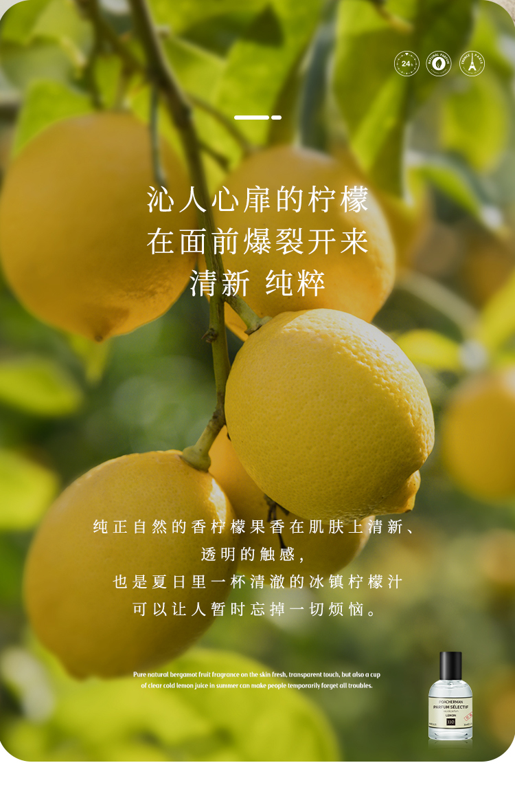 柏世曼柠檬香水 清爽柠檬味柑橘调香氛中性男女士香水学生淡香