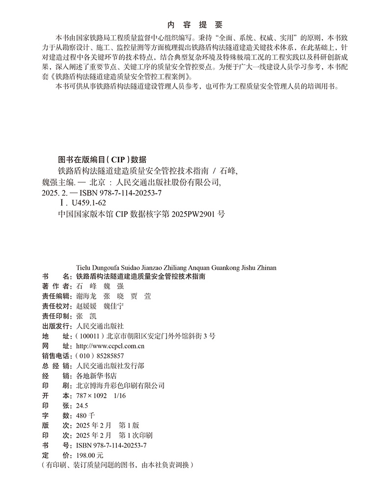 书名:铁路盾构法隧道建造质量安全管控技术指南