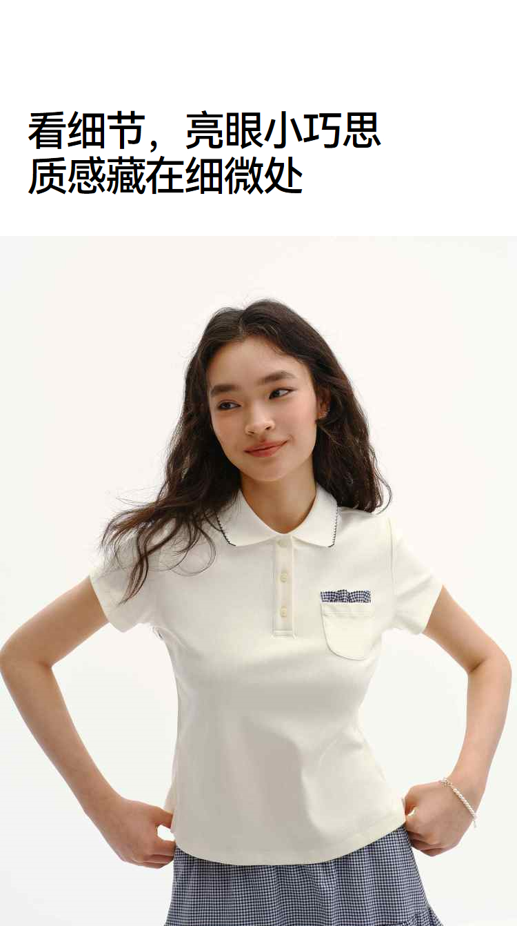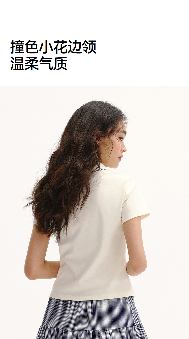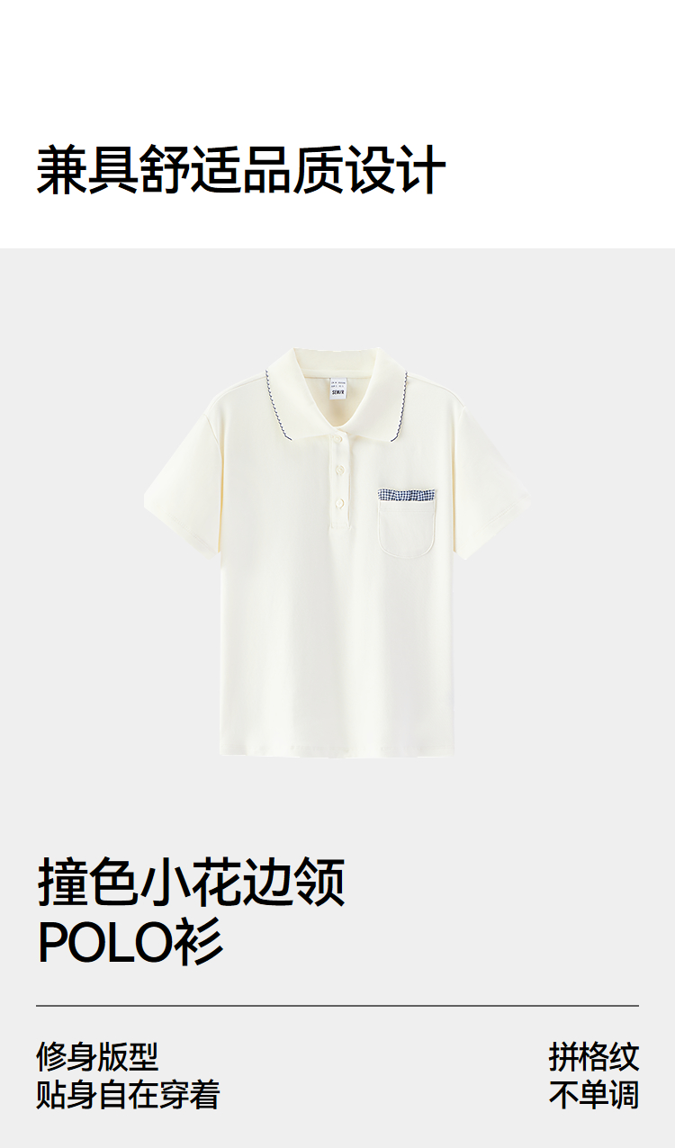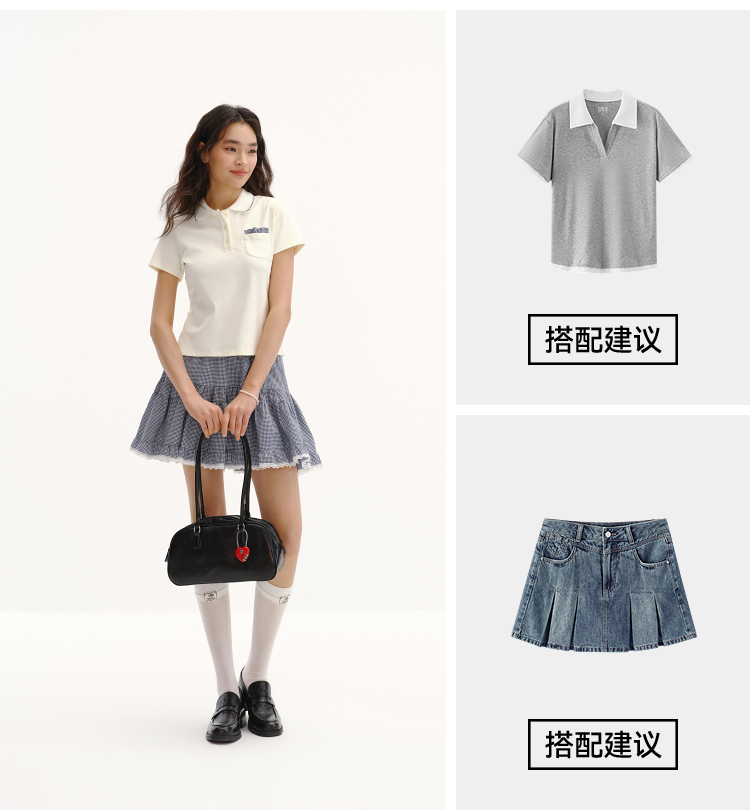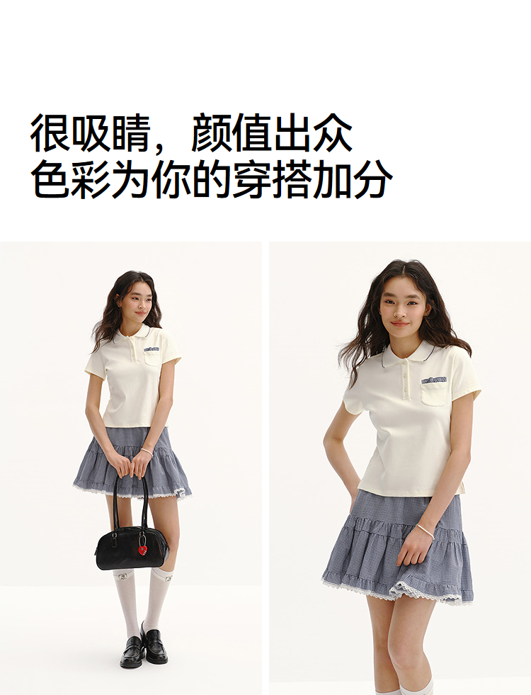 商场同款|森马POLO衫女夏季修身拼接格纹2026新款温柔小个子衣服
