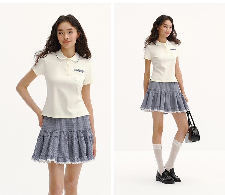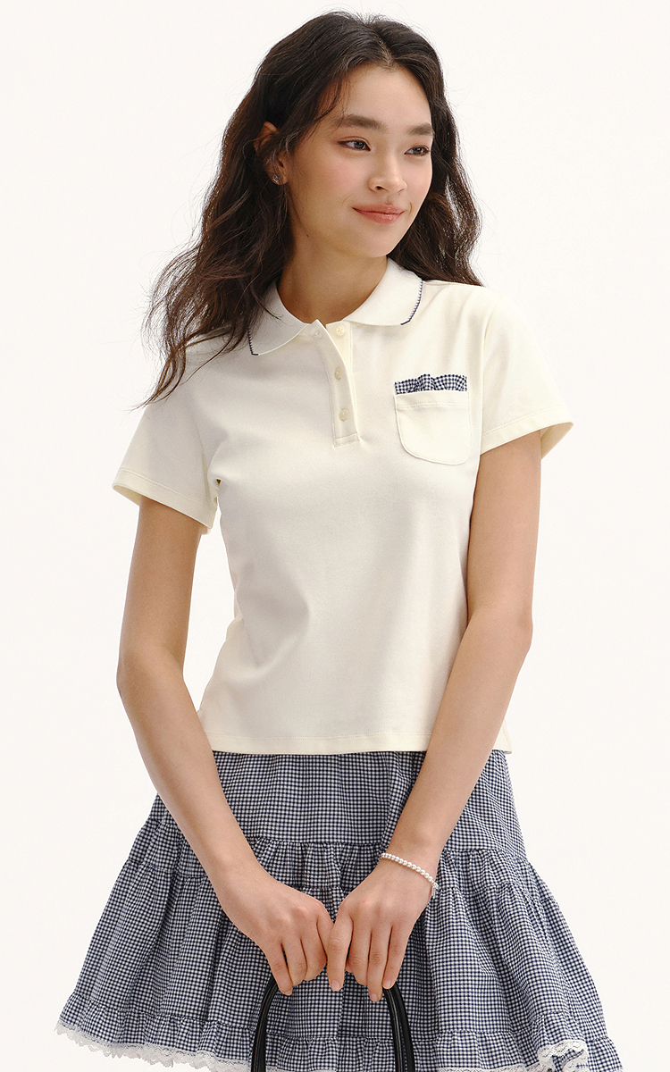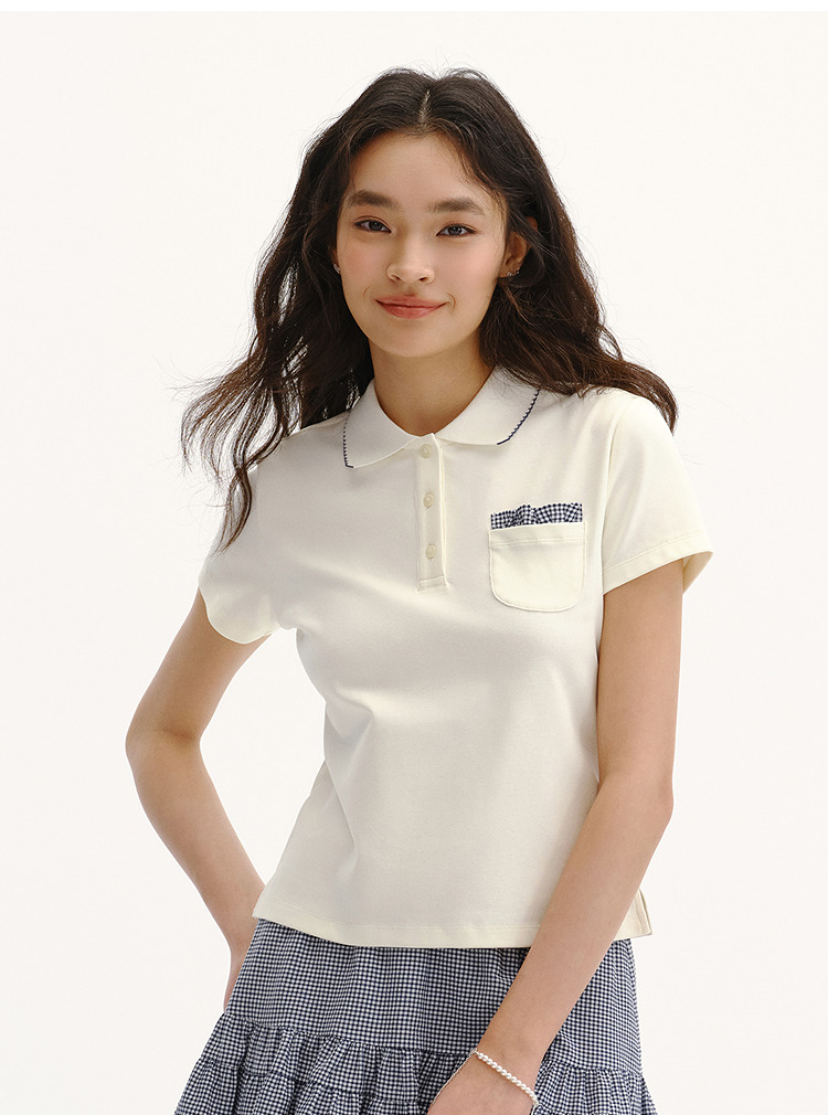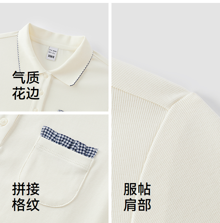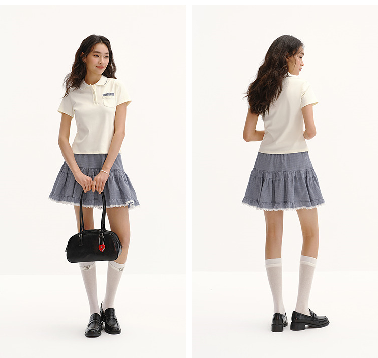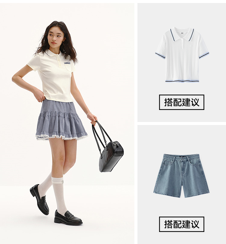 商场同款|森马POLO衫女夏季修身拼接格纹2026新款温柔小个子衣服