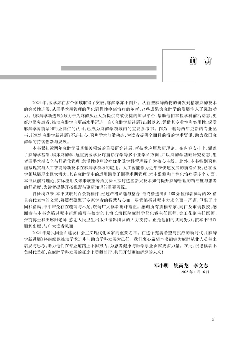 2025麻醉学新进展 邓小明 姚尚龙 李文志 涵盖了麻醉学基础 临床麻醉学 危重病医学及疼痛诊疗学等多个亚学科方向 人民卫生出版社
