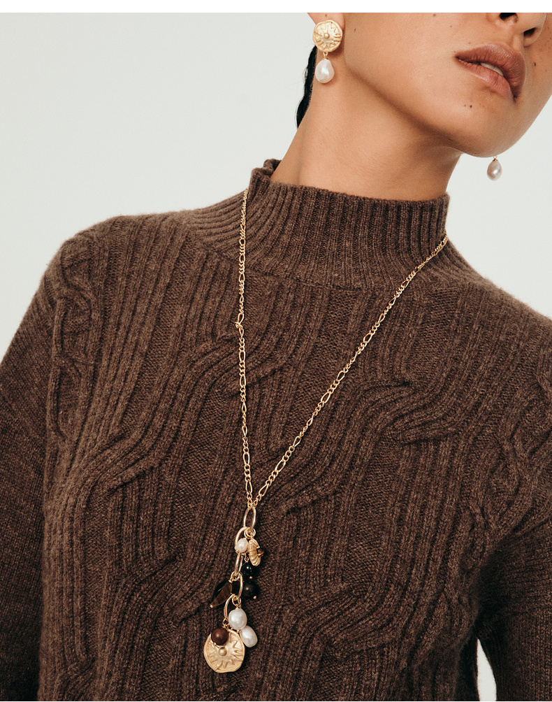 送女友lost in echo2025早秋新款异域玛瑙黑檀木珍珠长项链毛衣链