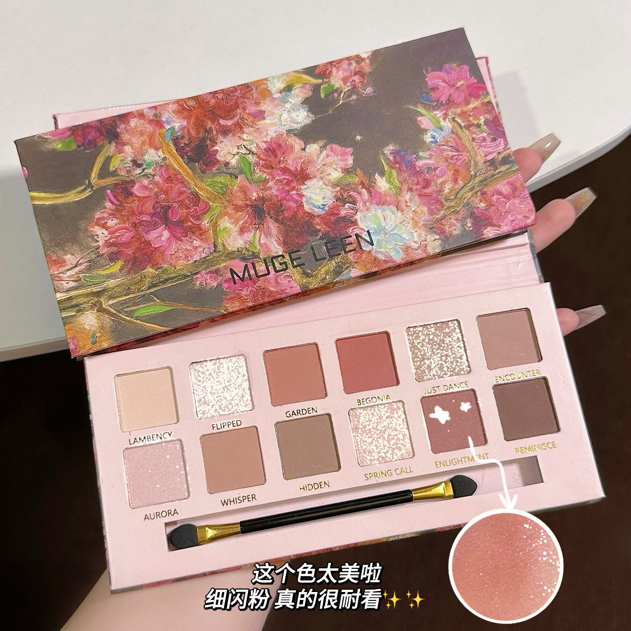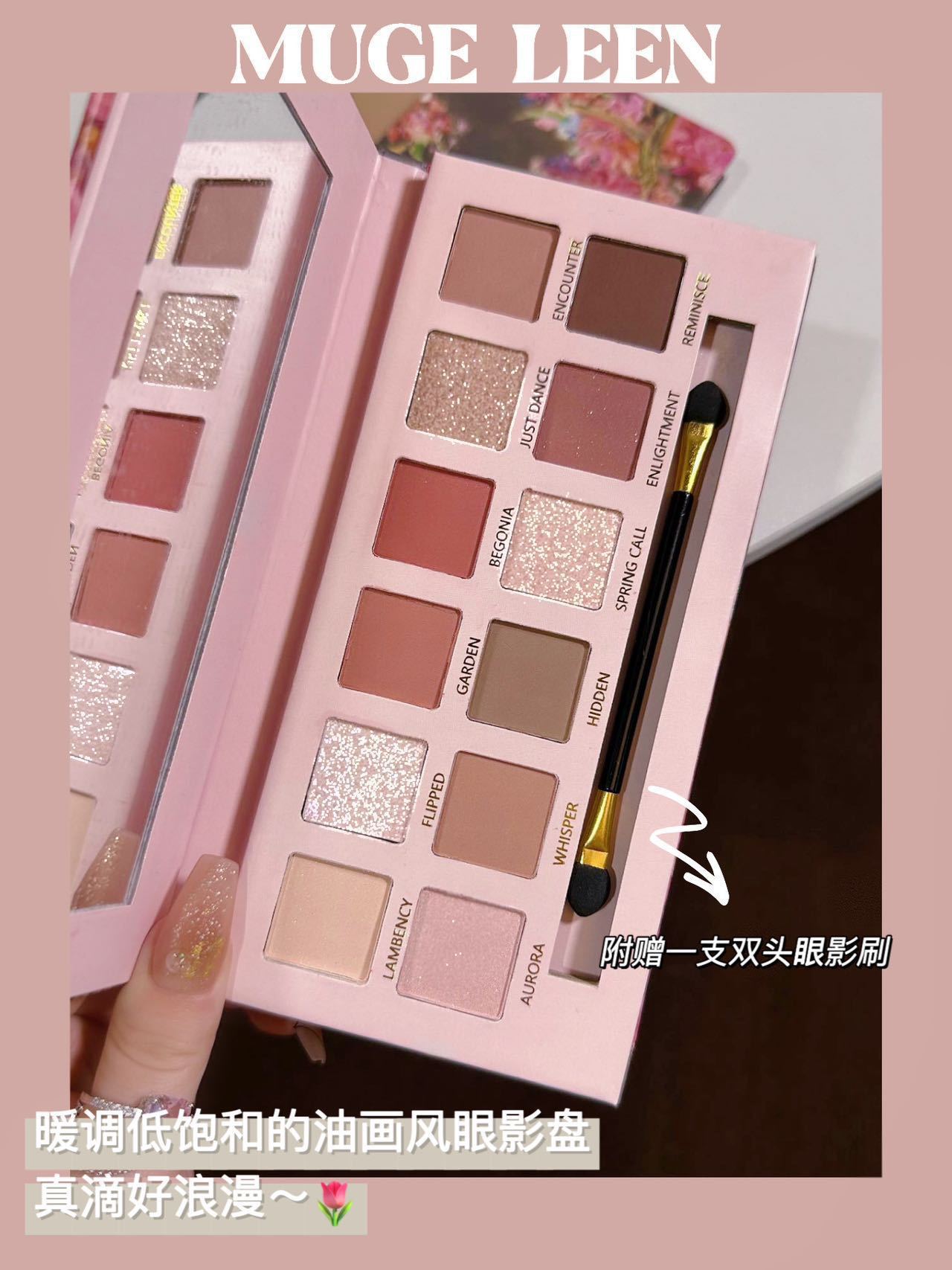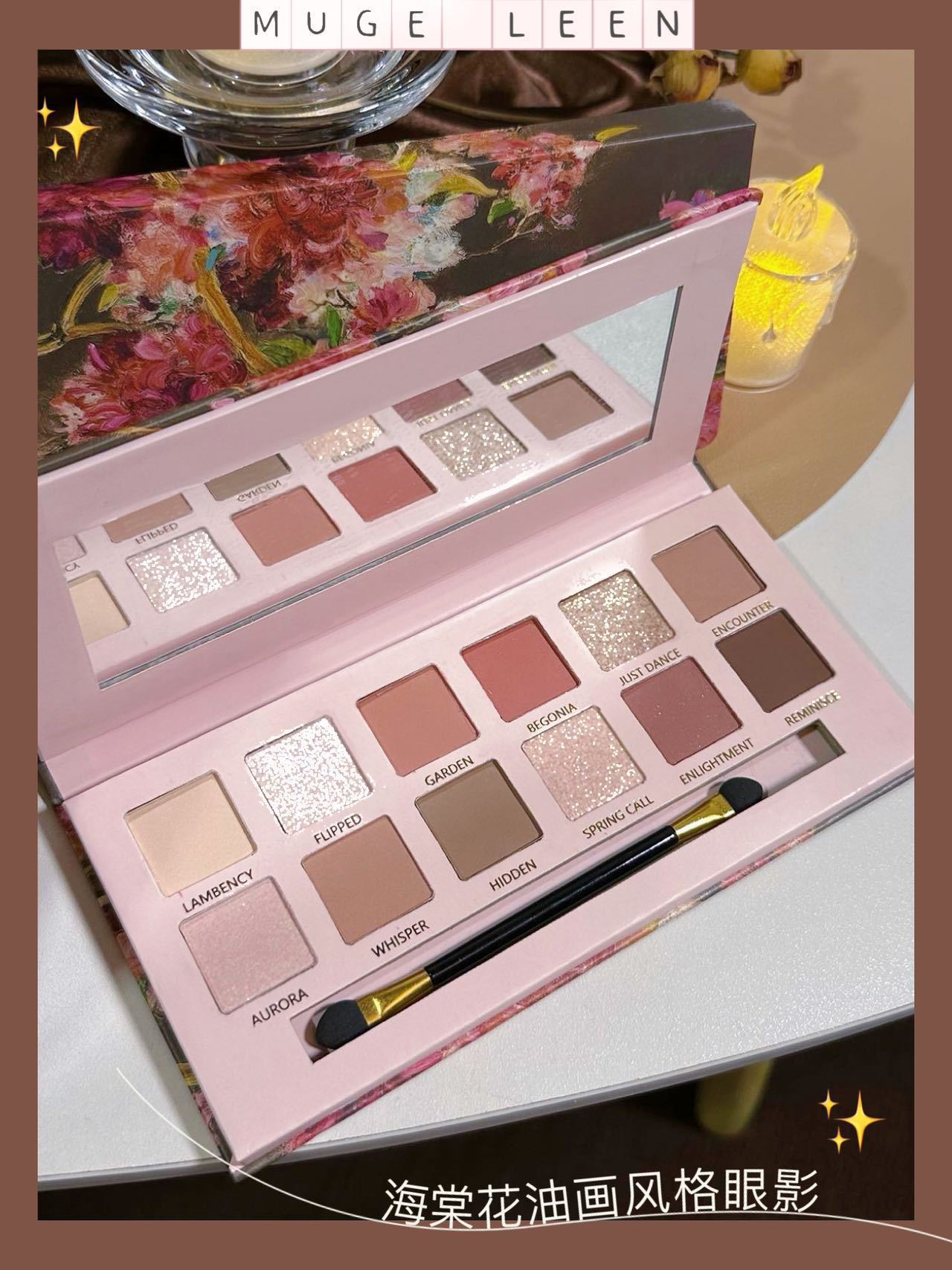「12色海棠花眼影盘」MUGE LEEN新款12色海棠花油画风粉棕眼影盘珠光哑光低饱和大地色彩妆