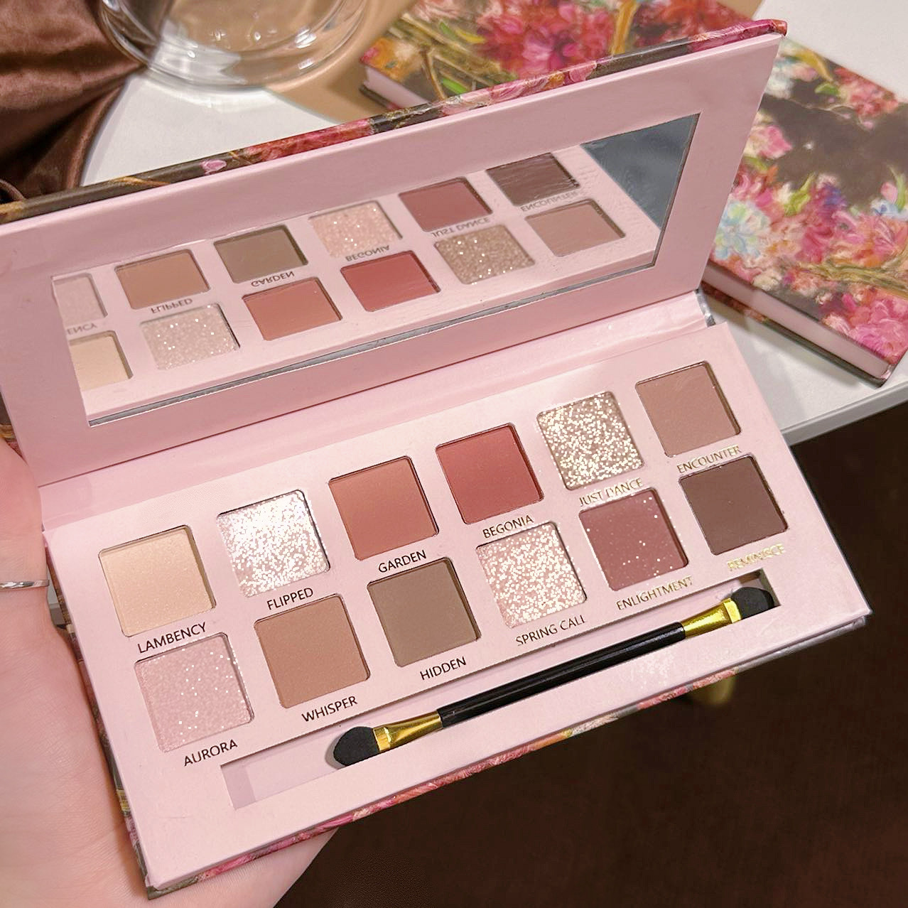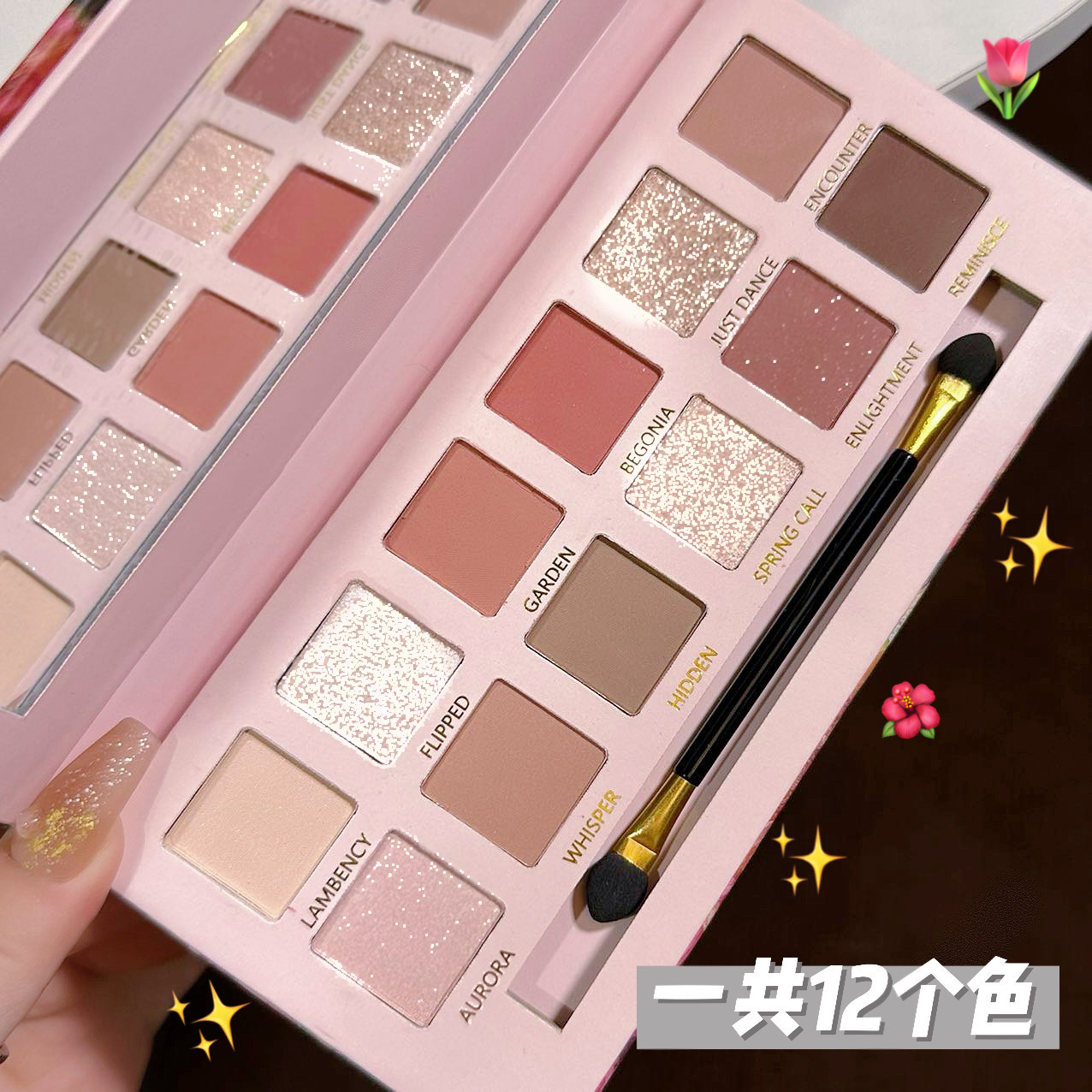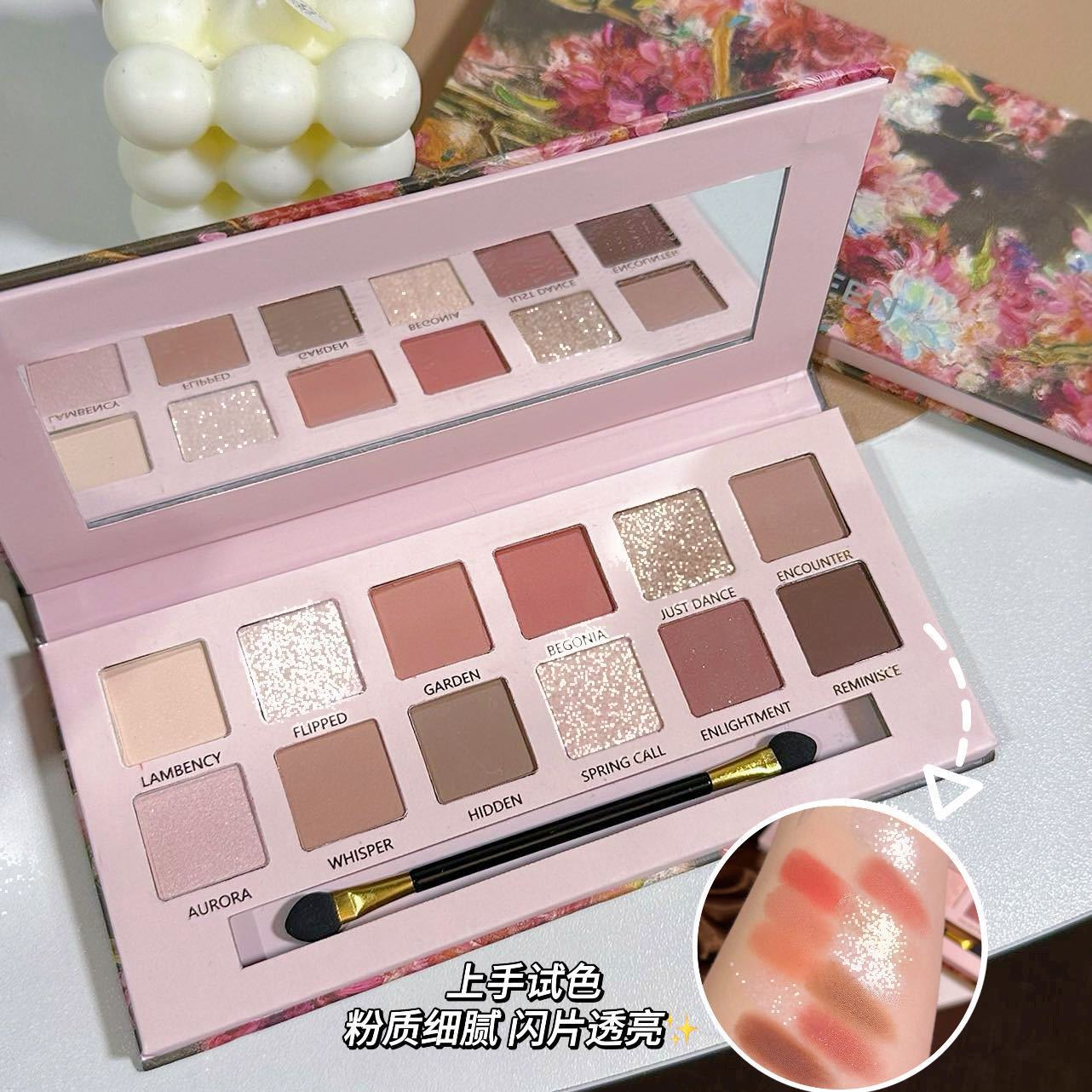 「12色海棠花眼影盘」MUGE LEEN新款12色海棠花油画风粉棕眼影盘珠光哑光低饱和大地色彩妆