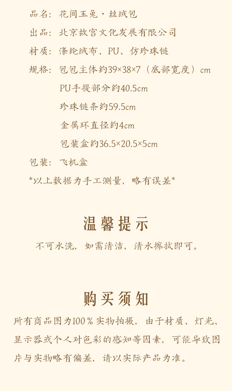 【故宫包袋】花间玉兔丝绒包单肩包手提包