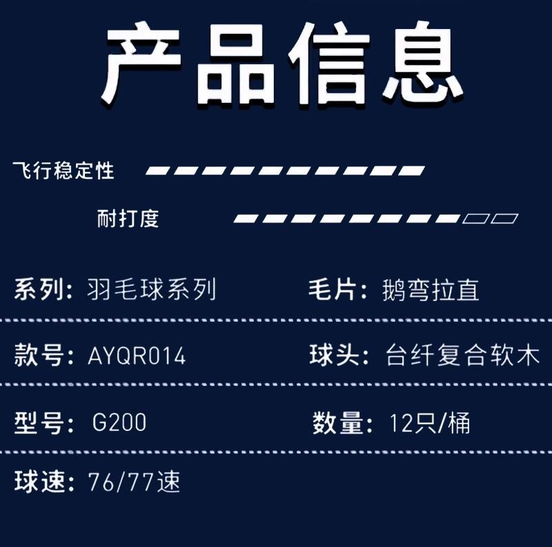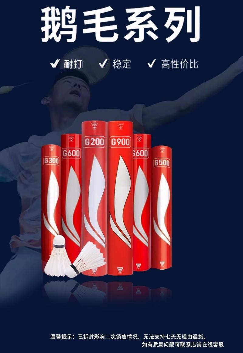 李宁羽毛球耐打稳定鹅毛球尼龙球G200/G600/G900D8比赛训练球