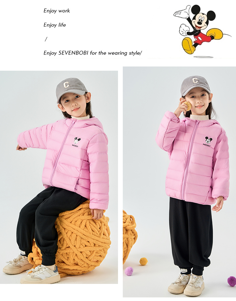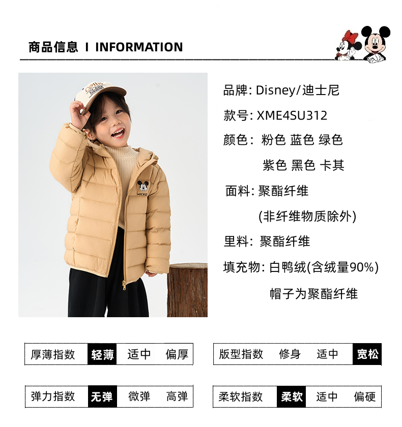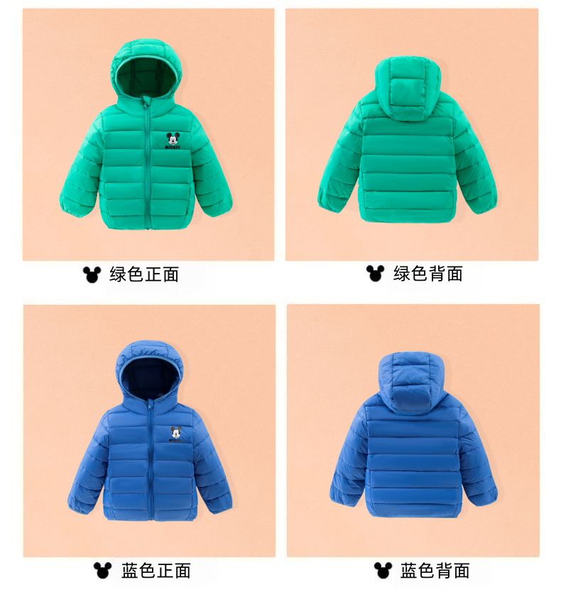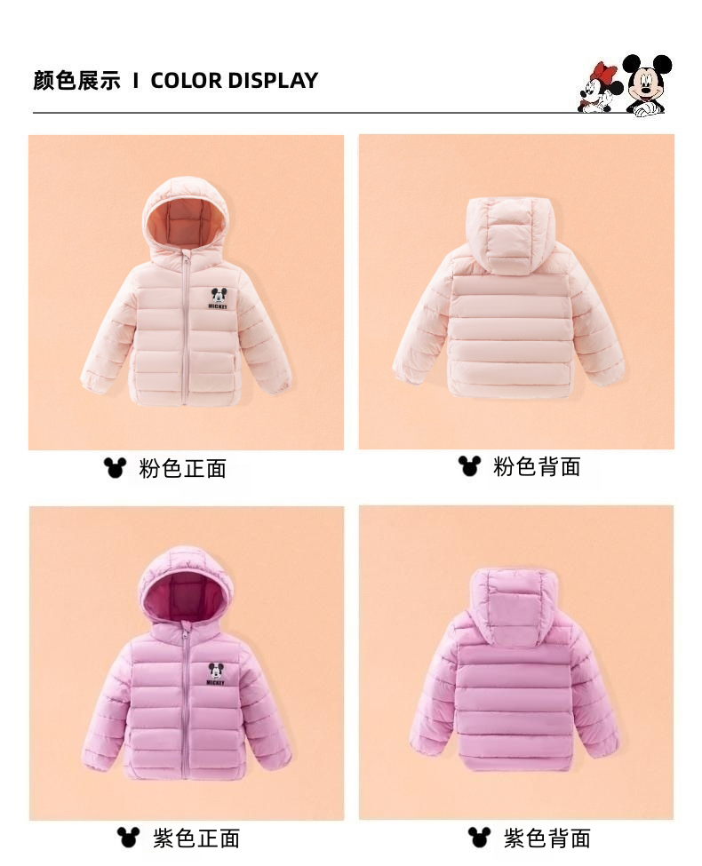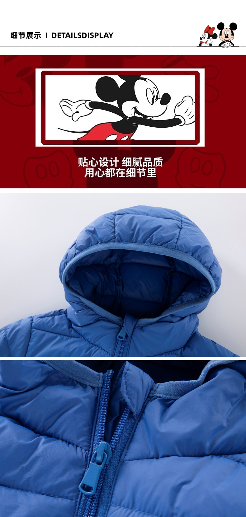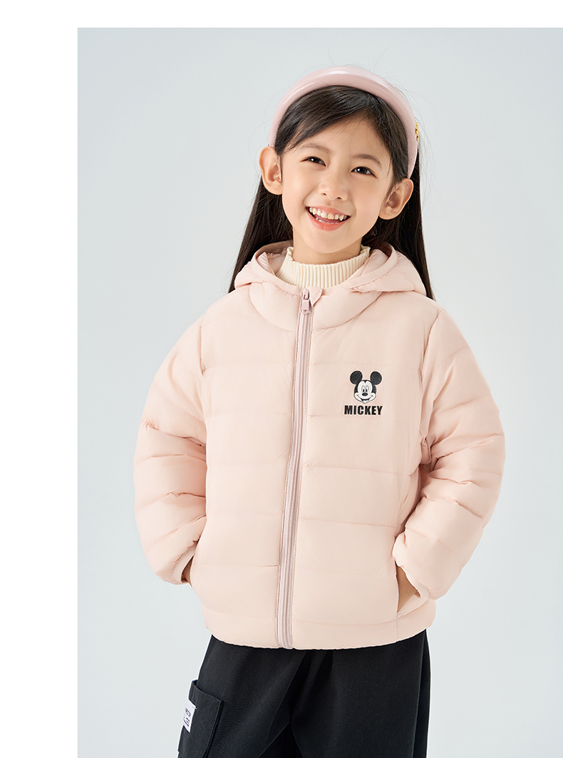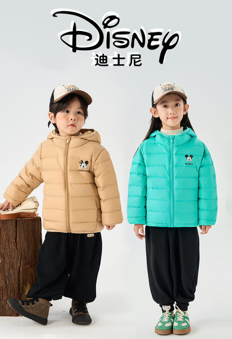 Disney/迪士尼新款男女童轻薄羽绒中小童冬装连帽外套XME4SU312