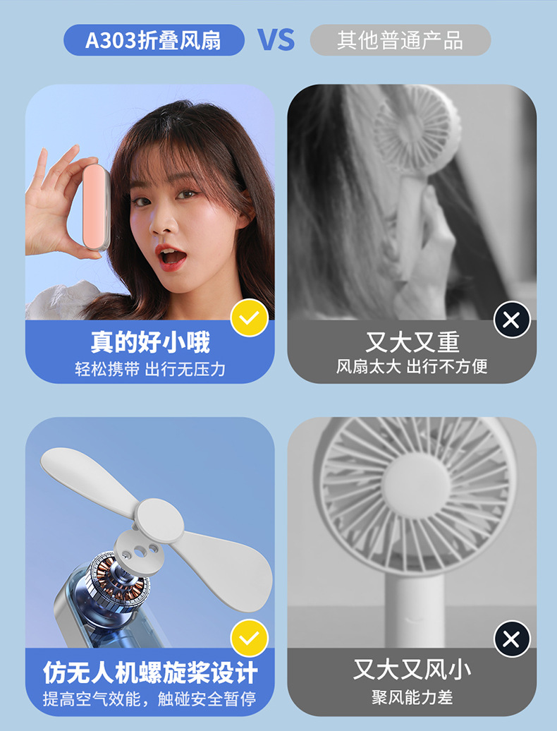 【折叠小风扇!不再怕出汗融妆】手持小风扇便携式桌面随身迷你小型可折叠多功能小风扇办公室礼品。ry