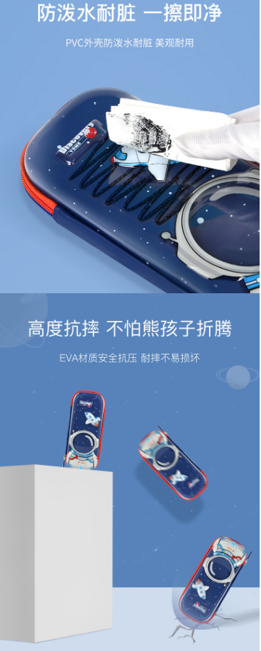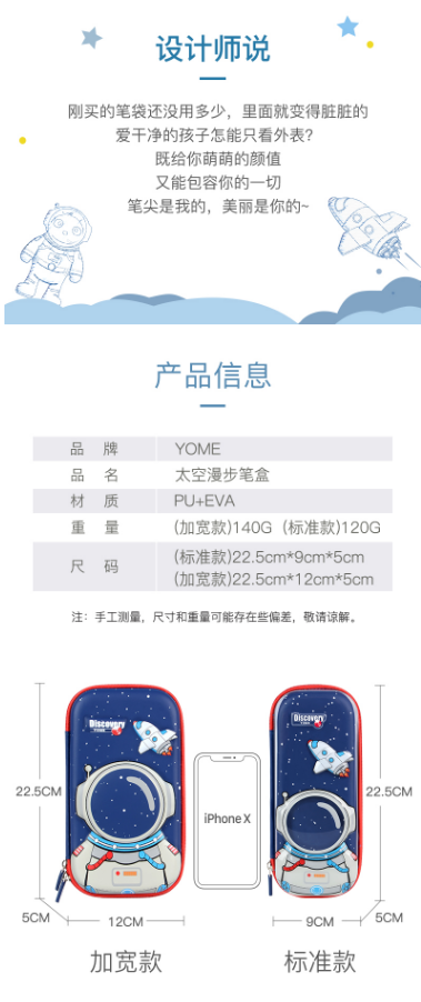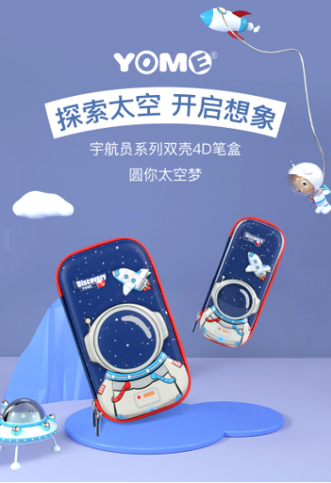 【2022开学季】YOME笔盒笔袋小学生书包必备大容量多功能儿童3D文具盒铅笔盒幼儿园文具 标准款太空人系列