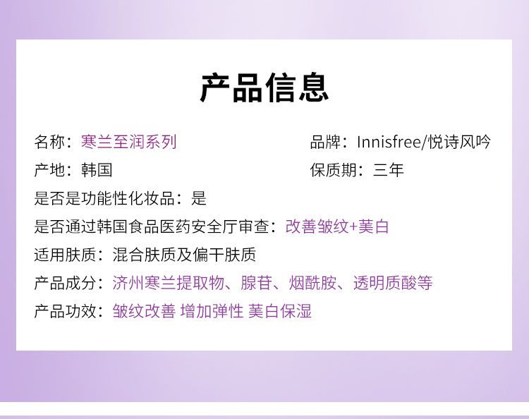 【预售 急单慎拍】韩国Innisfree悦诗风吟寒兰水乳套装美白抗皱补水护肤