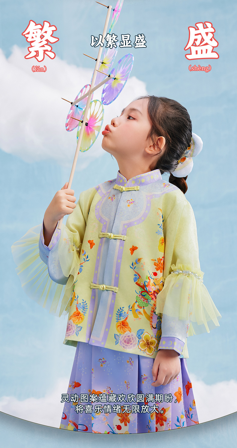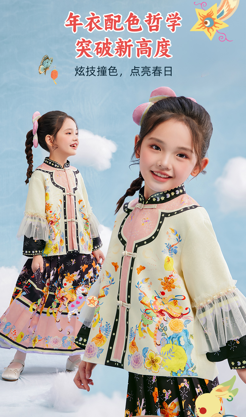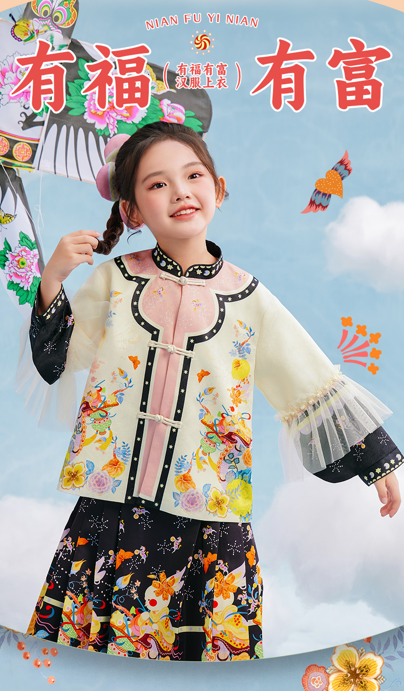 年衣童装女童新中式唐装外套2025年春新款女孩国风汉服上衣有福有富汉服上衣