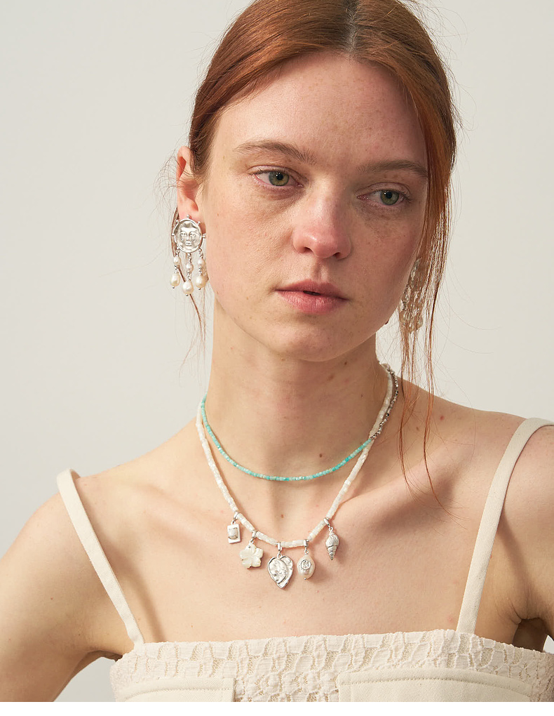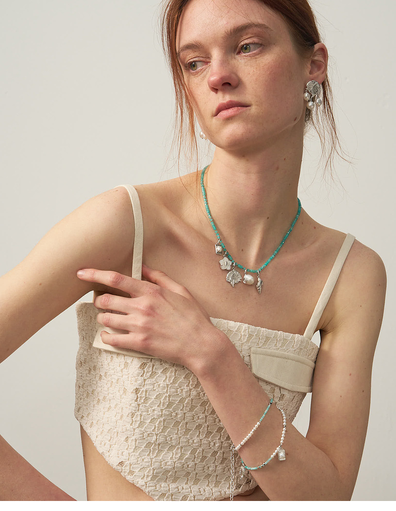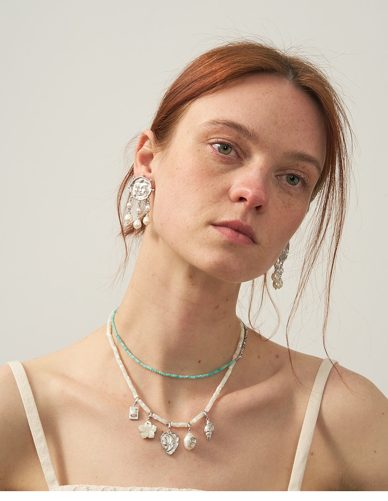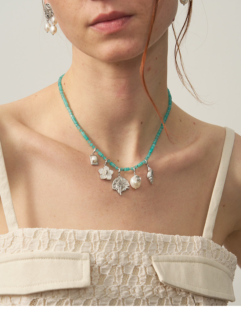 lost in echo2025夏季新款度假异域珍珠算盘手工多元素挂坠项链女
