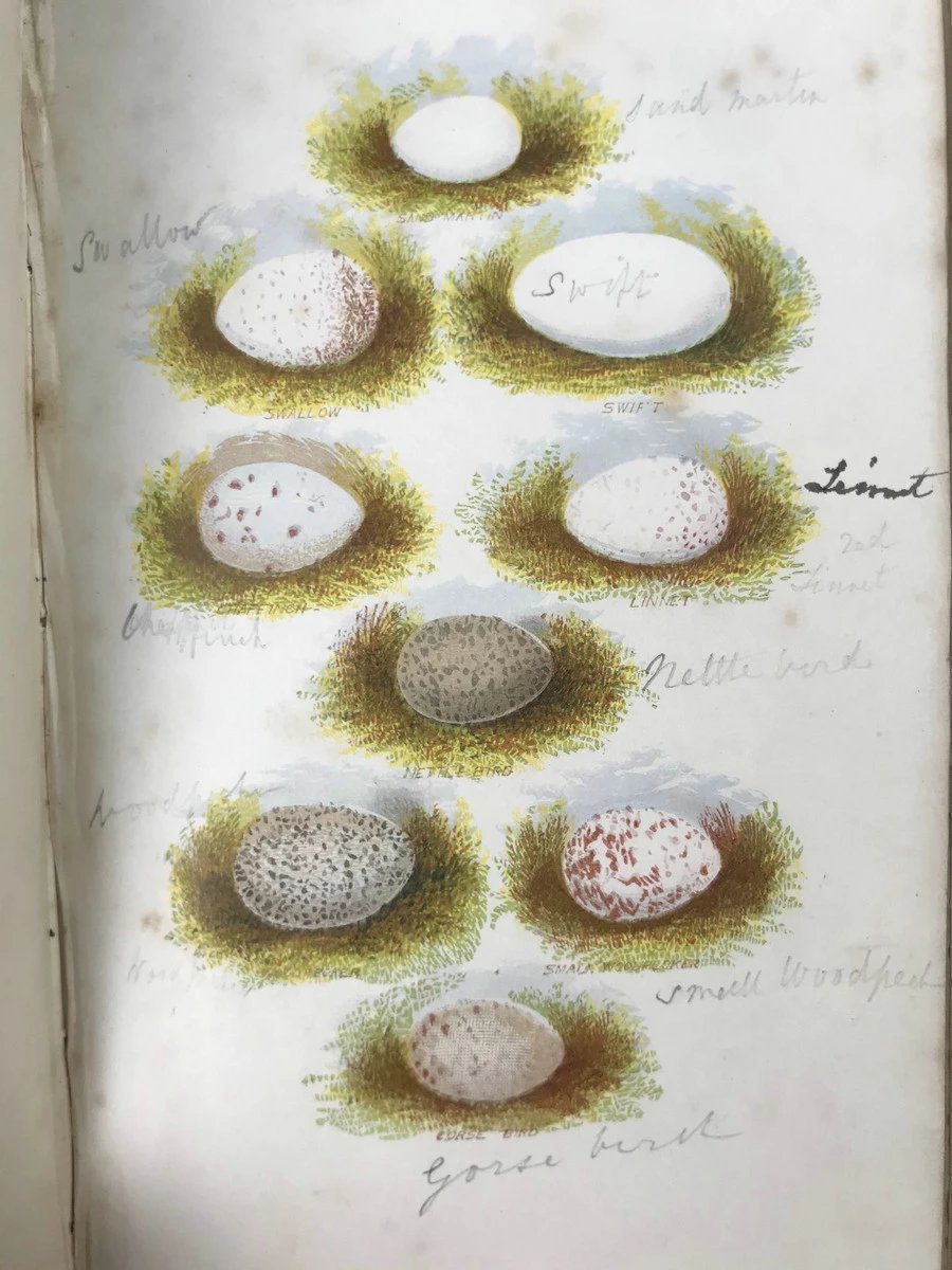 约19世纪后期 英国鸟卵图鉴 6页套色版画插图 漆布精装36开