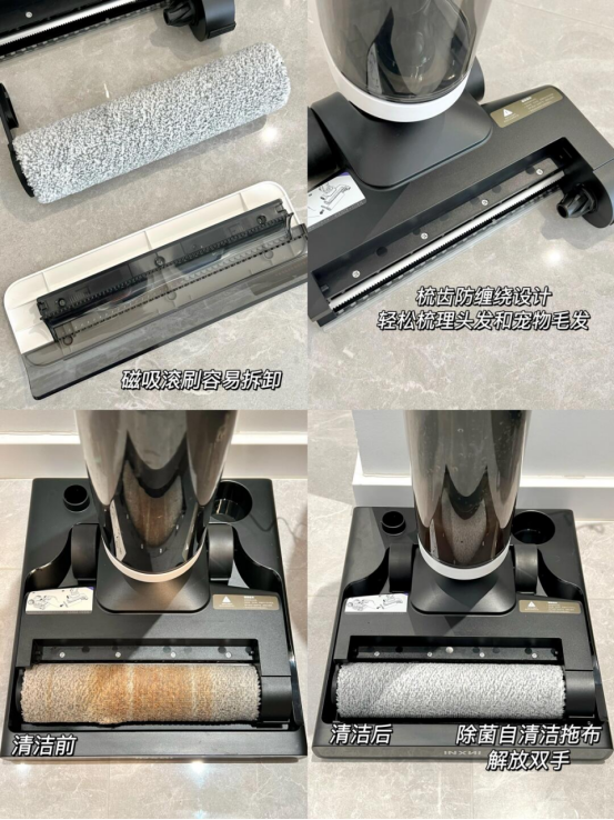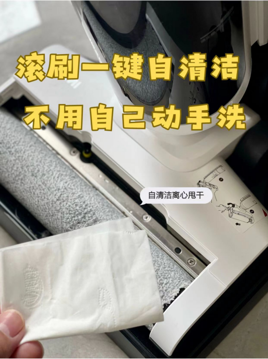 ✅无需手洗滚刷,机身自带高效清洁 一键开启即可使滚刷深度自清洁 真正的做到解放双手不脏手!! 自带滚刷离心风干设计 ✅抑菌、除臭、风干,一步到位 避免环境二次污染,可延长滚刷寿命,高效又省电
