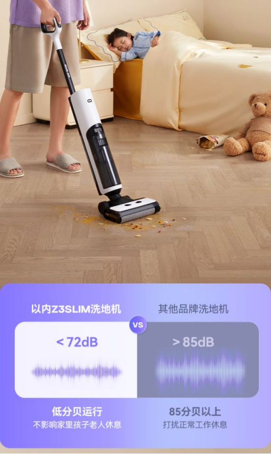 ✅最大噪音值仅72分贝,实测分贝还更小 我很喜欢他们家的一个点:噪音巨小!!! 在转速如此高的情况下,噪音远远低于同行 家人们谁懂啊! 我拿个“吸尘器”嗡嗡嗡吵半个小时 真的头痛欲裂!!! 以内洗地机工作最大噪音值仅72分贝 自清洁时噪音值60分贝 机器工作时,我们正常音量对话完全不受影响