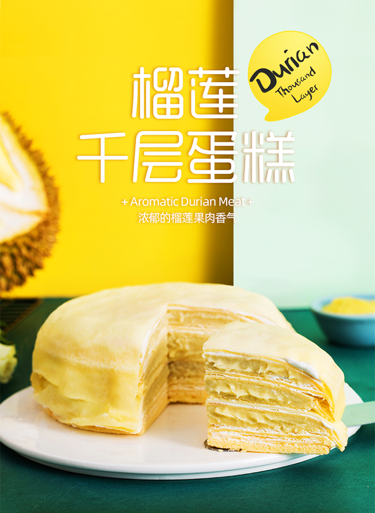 明天到~【爆浆榴莲千层】450g/6寸,带刀叉盘