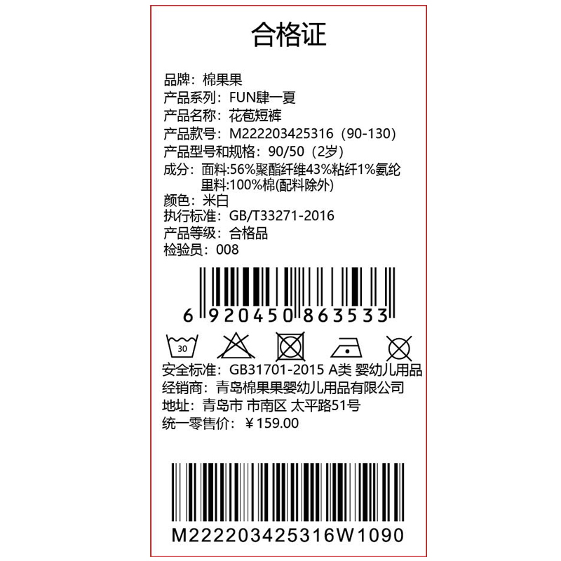 | 成品裤长 | 24.5 | 26 | 27.5 | 29 | 30.5 |