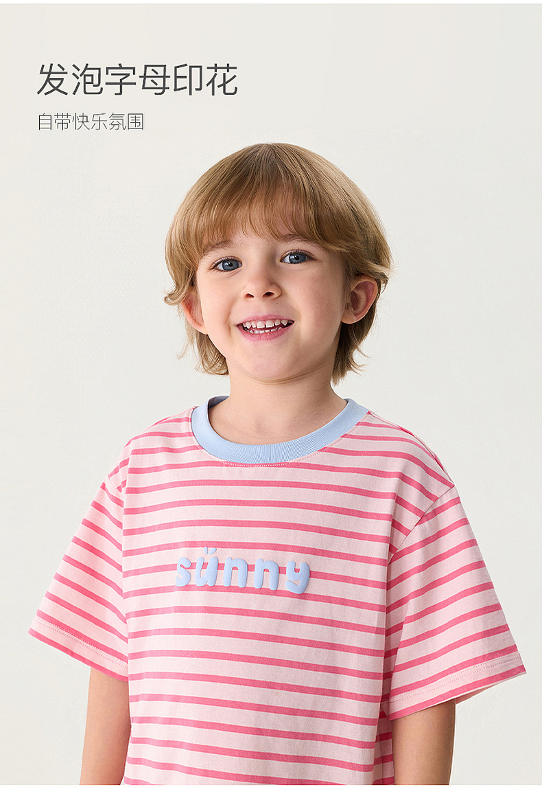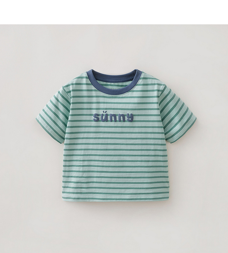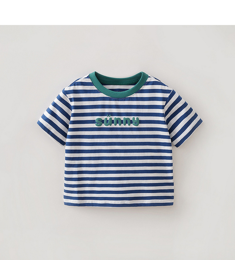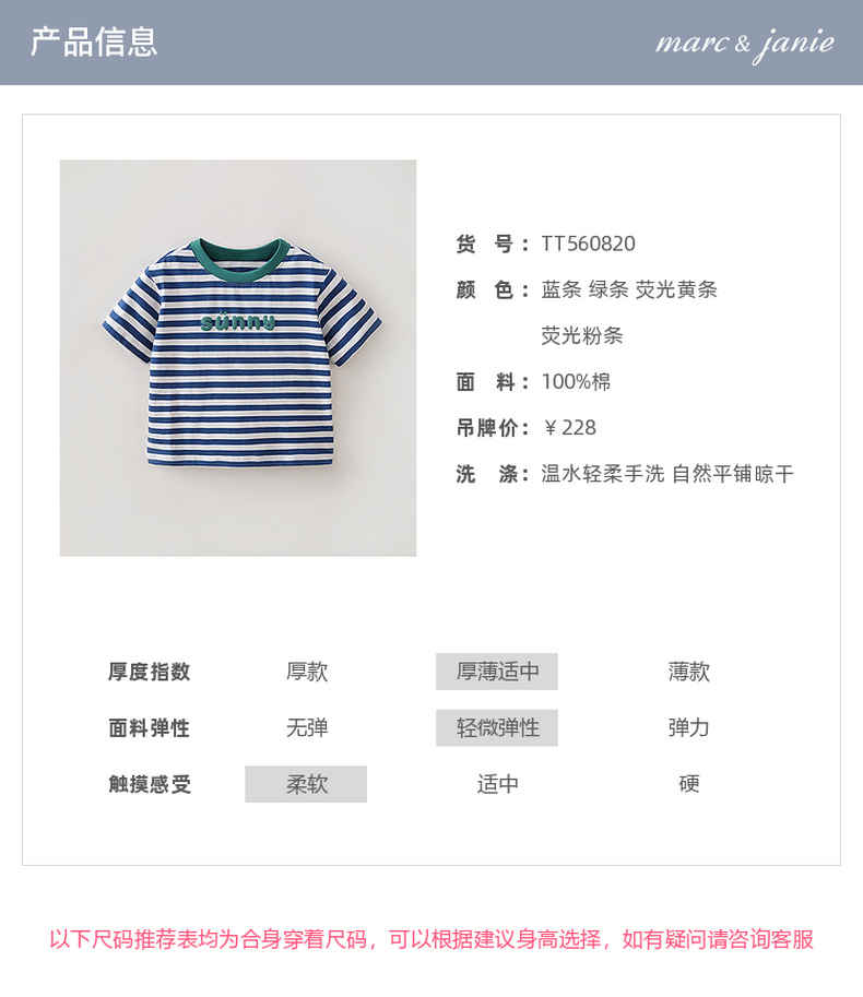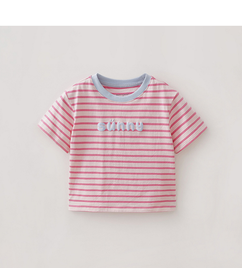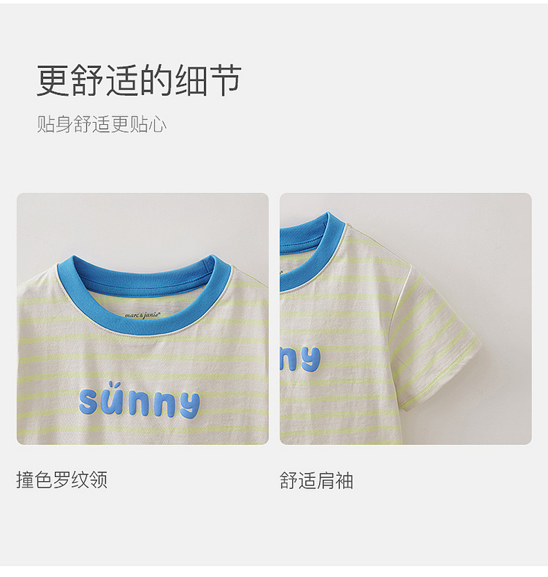 马克珍妮条纹男女童纯棉字母T恤2026年夏装新款560820