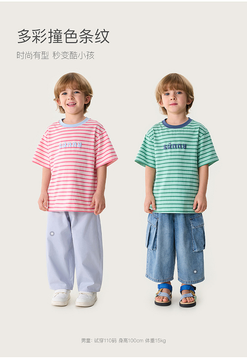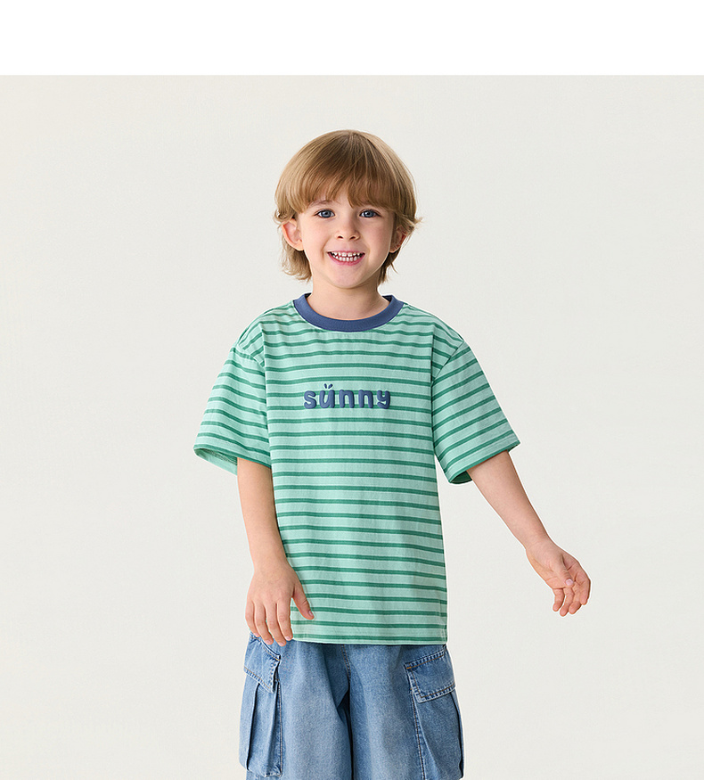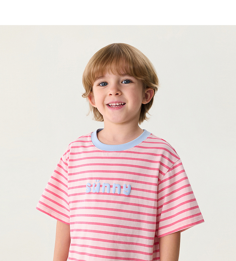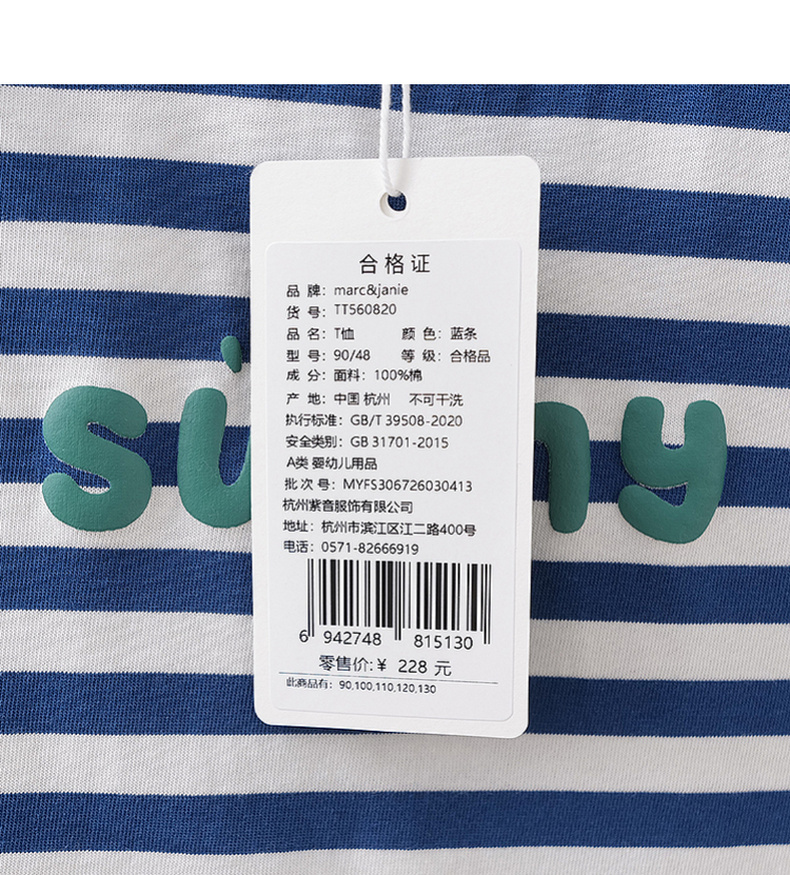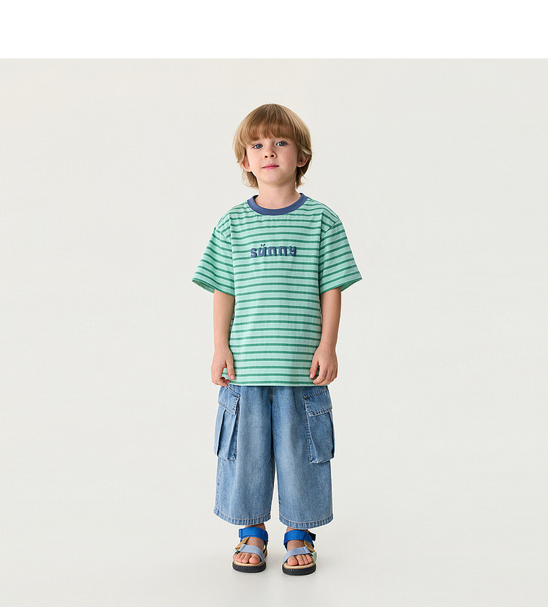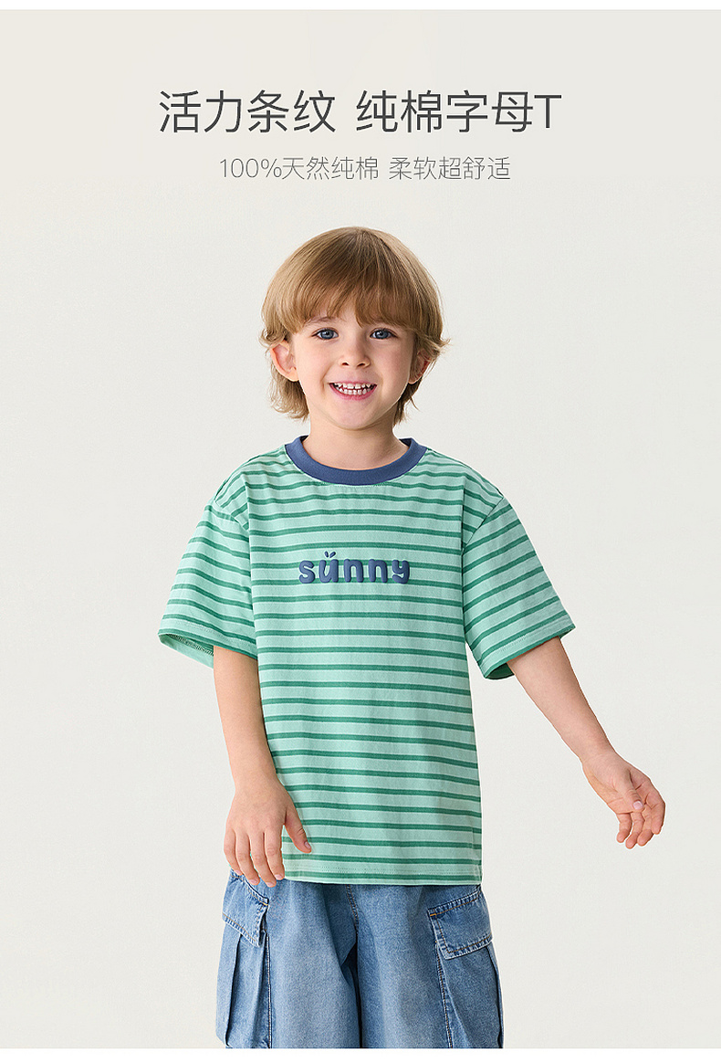 马克珍妮条纹男女童纯棉字母T恤2026年夏装新款560820