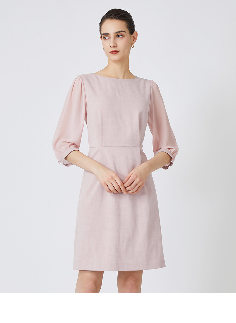 皮尔卡丹女装夏季新款简约通勤拼接修身连衣裙P1279D1111B3