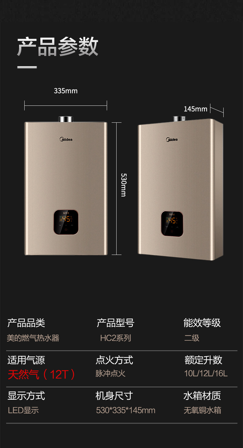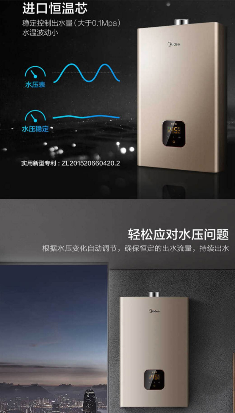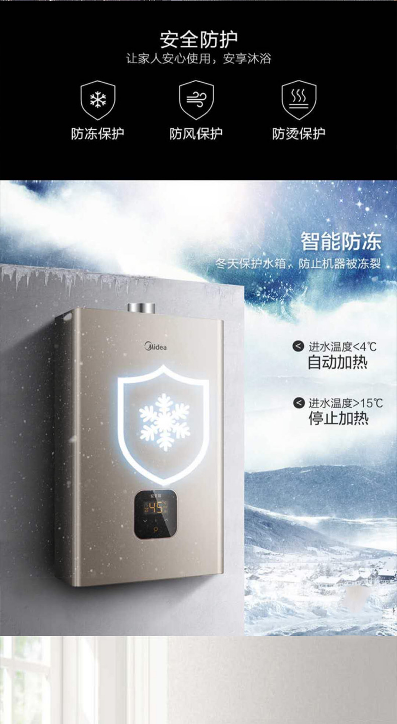 美的燃气热水器天然气家用恒温洗澡防冻电辅防冻JSQ25-13HC2