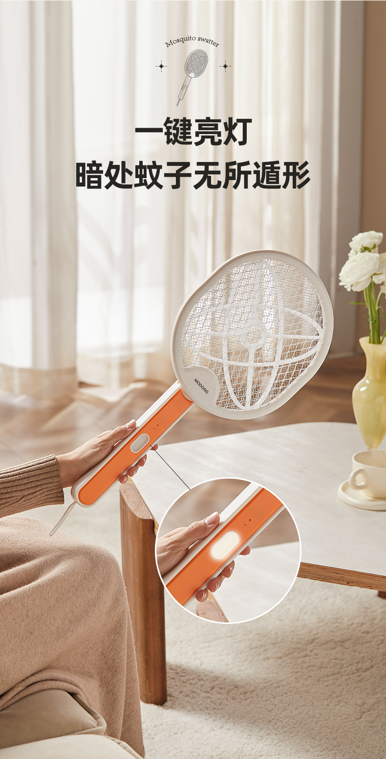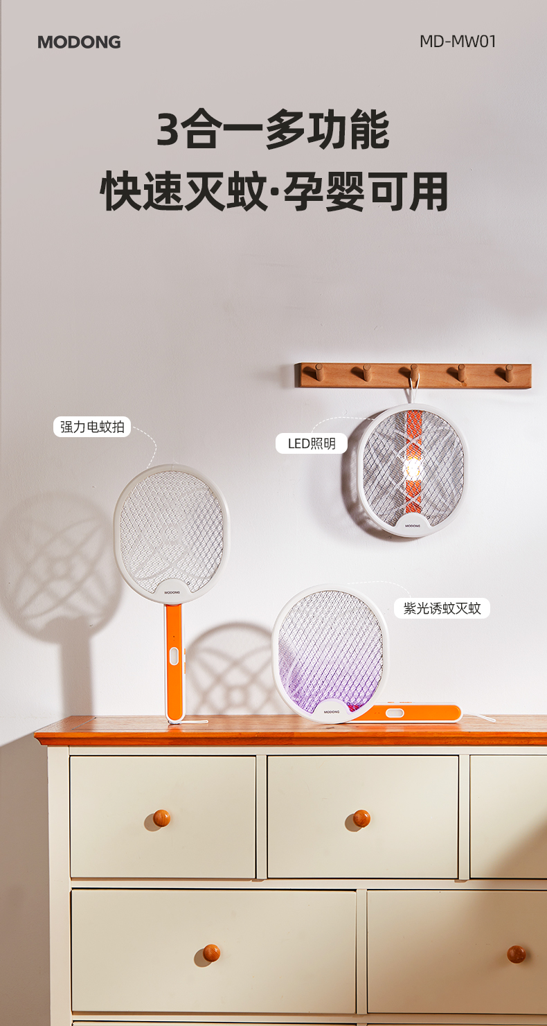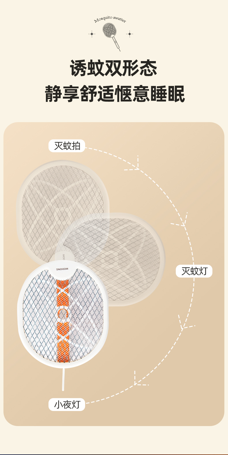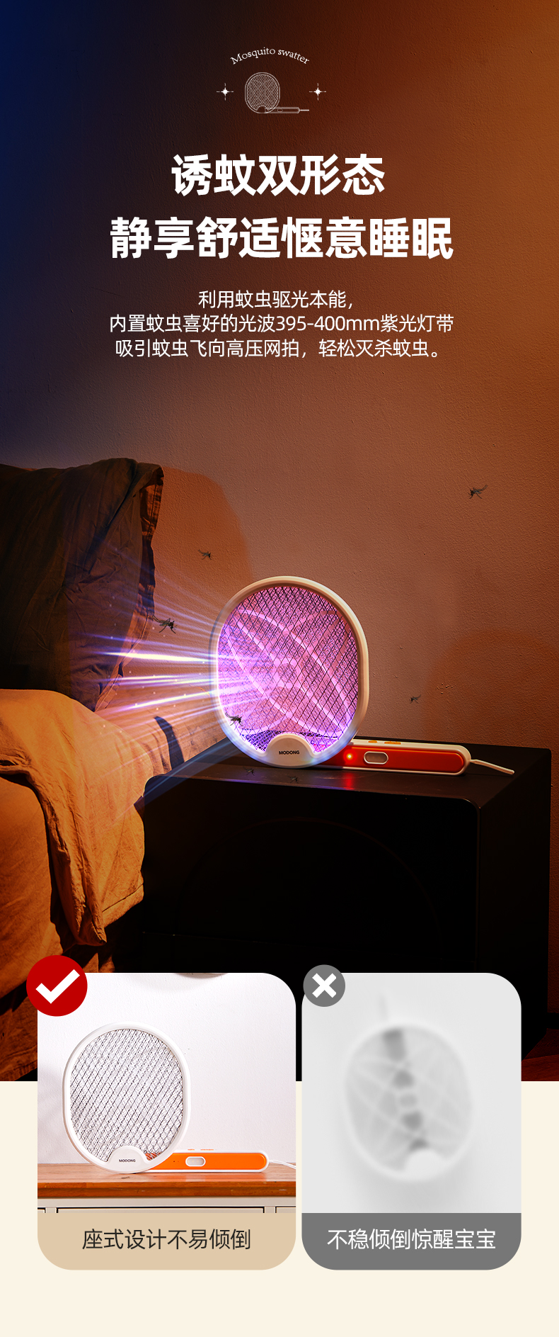 【3合一多功能 一拍多用 】摩动多功能灭蚊拍 网面加大 LED灯紫光诱蚊 无死角快速灭蚊 320g轻巧便携 30天长久续航 座式/悬挂可切换 孕婴可用