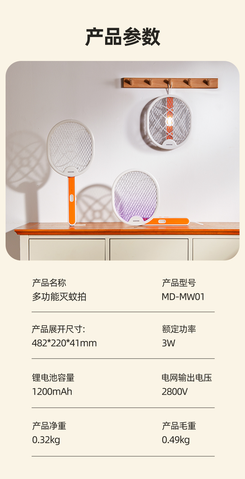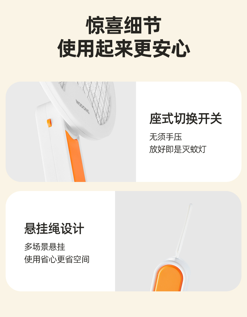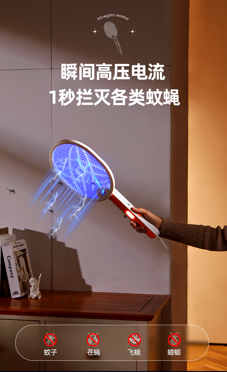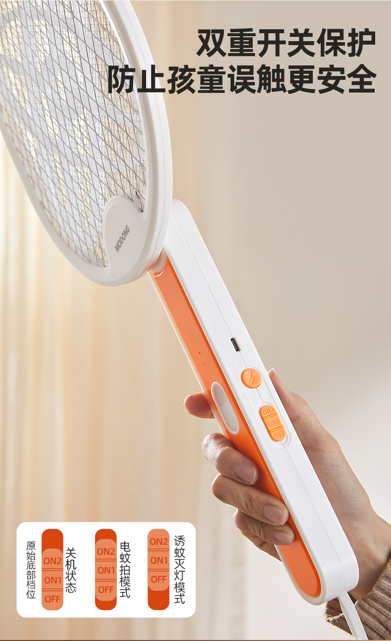 【3合一多功能 一拍多用 】摩动多功能灭蚊拍 网面加大 LED灯紫光诱蚊 无死角快速灭蚊 320g轻巧便携 30天长久续航 座式/悬挂可切换 孕婴可用