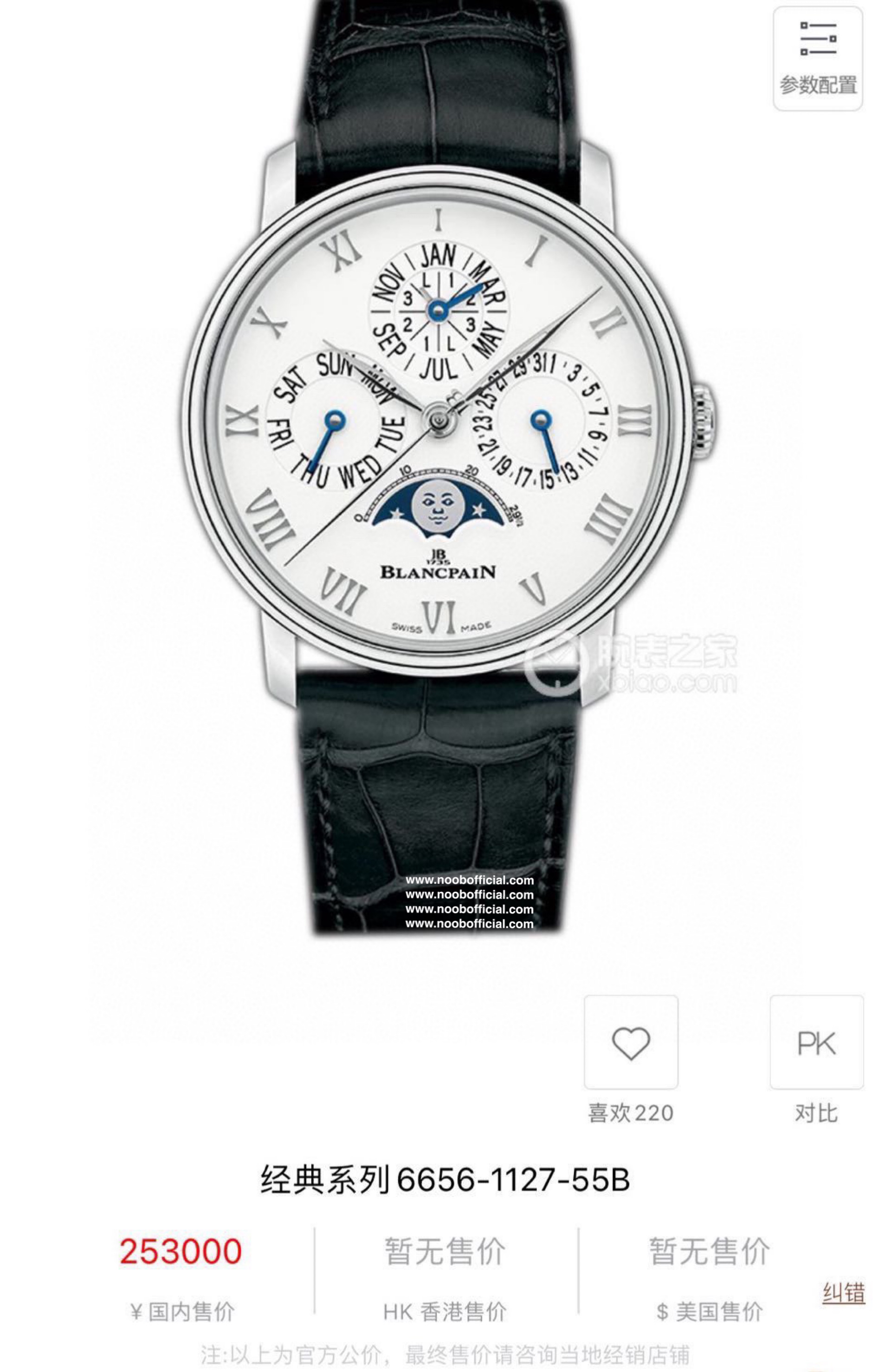 【N Factory诚意推荐】宝珀(Blancpain )经典系列6656自动机械手表,高度防水,排除故障率 ,搭载Cal.5954定制版机芯,不但实现了大部分功能而且走时稳定,这是复刻少有的耐操性复杂腕表!