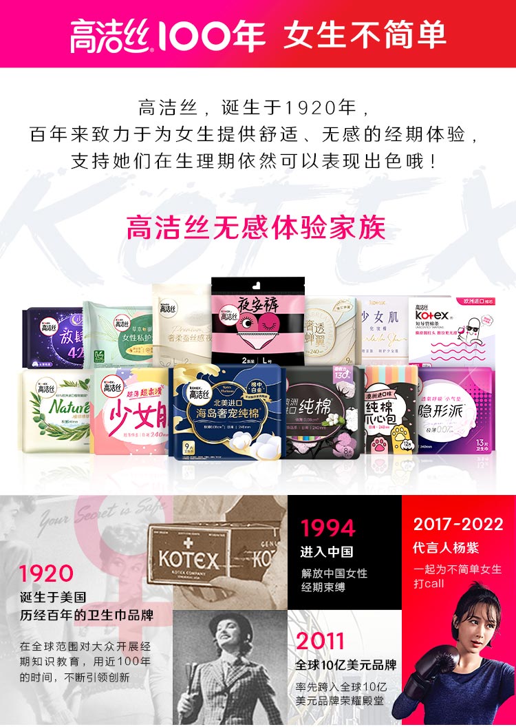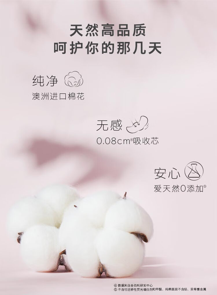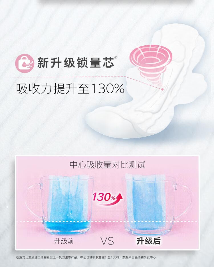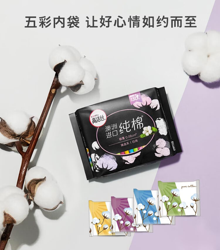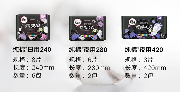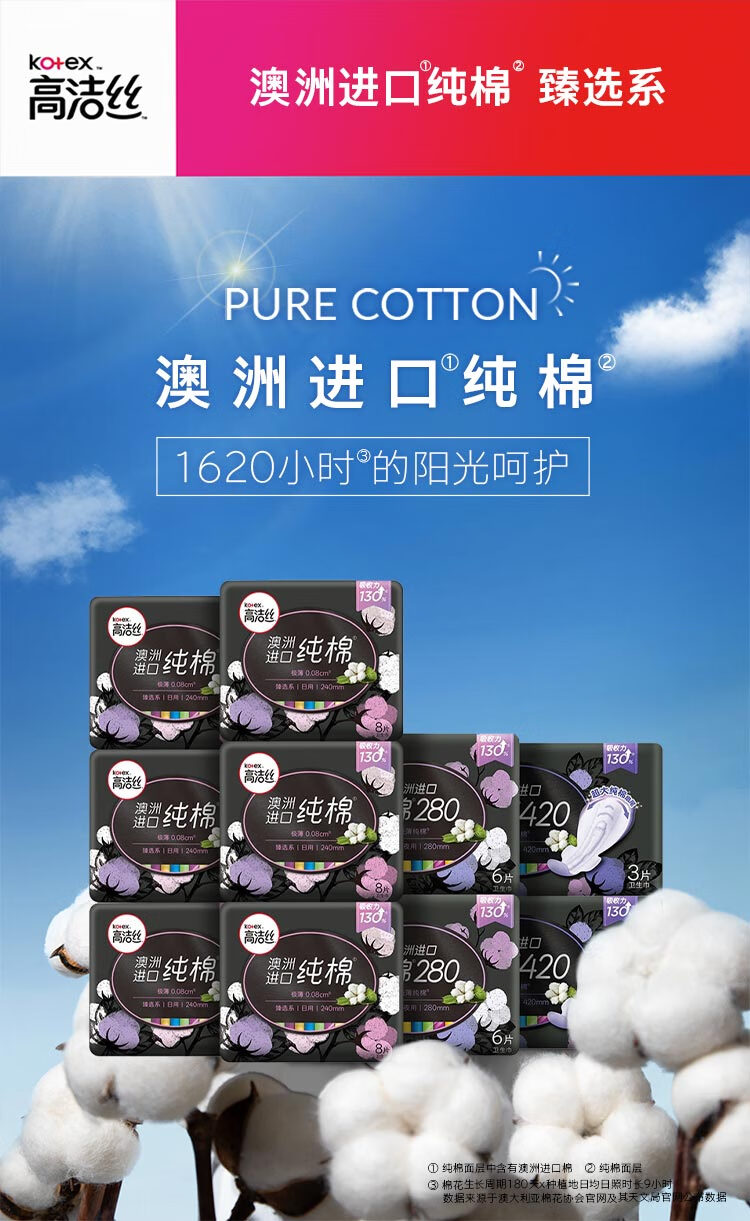 高洁丝Kotex臻选澳洲纯棉极薄日夜组合10包66片(240mm*48+280mm*12+420mm*6)卫生巾套装(新老包装随机发货)