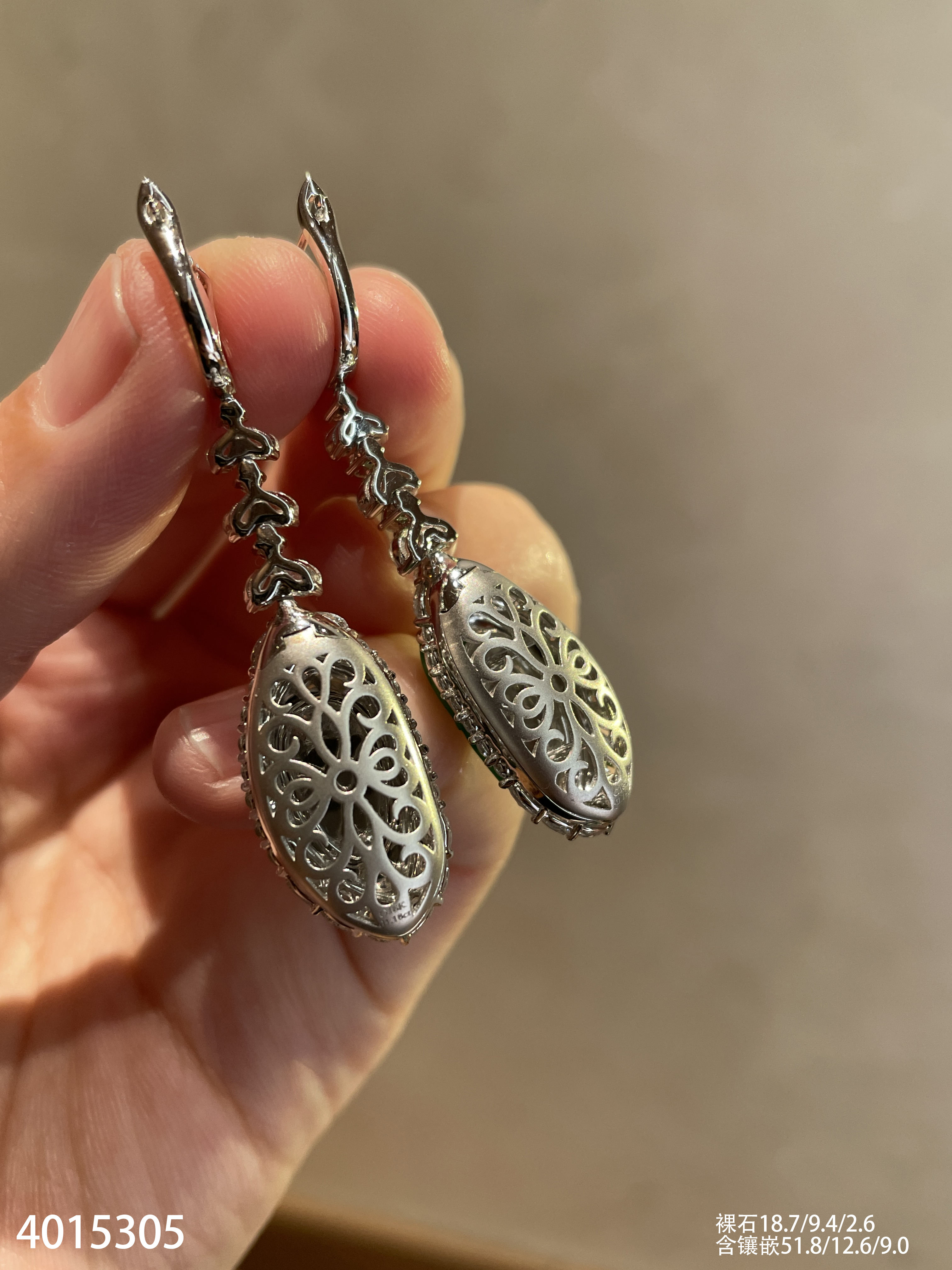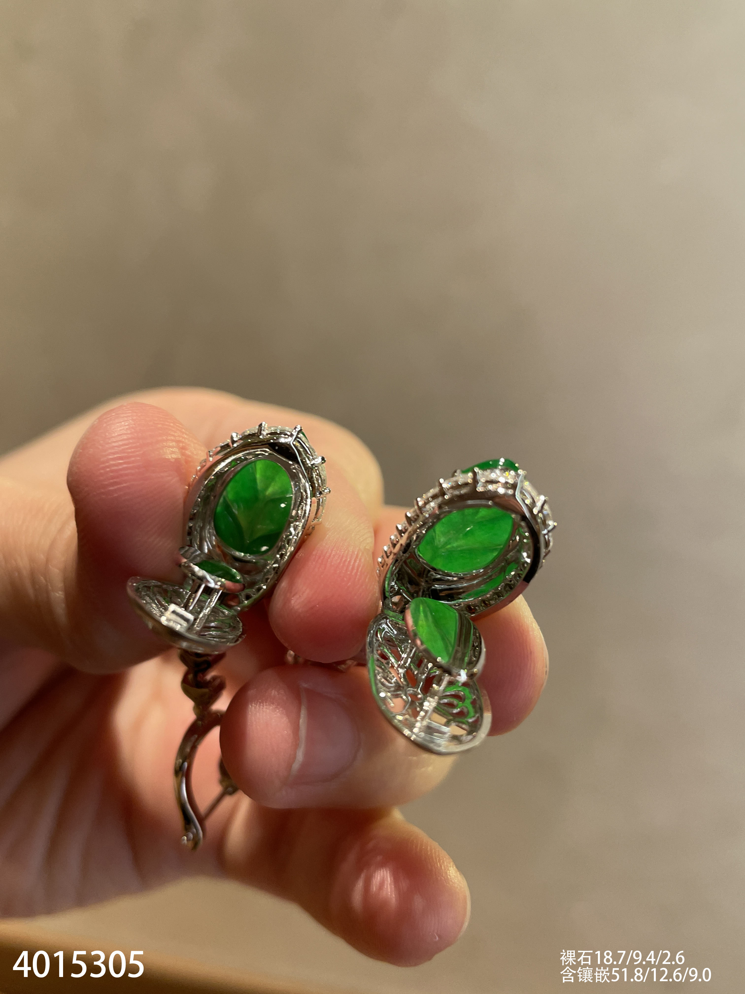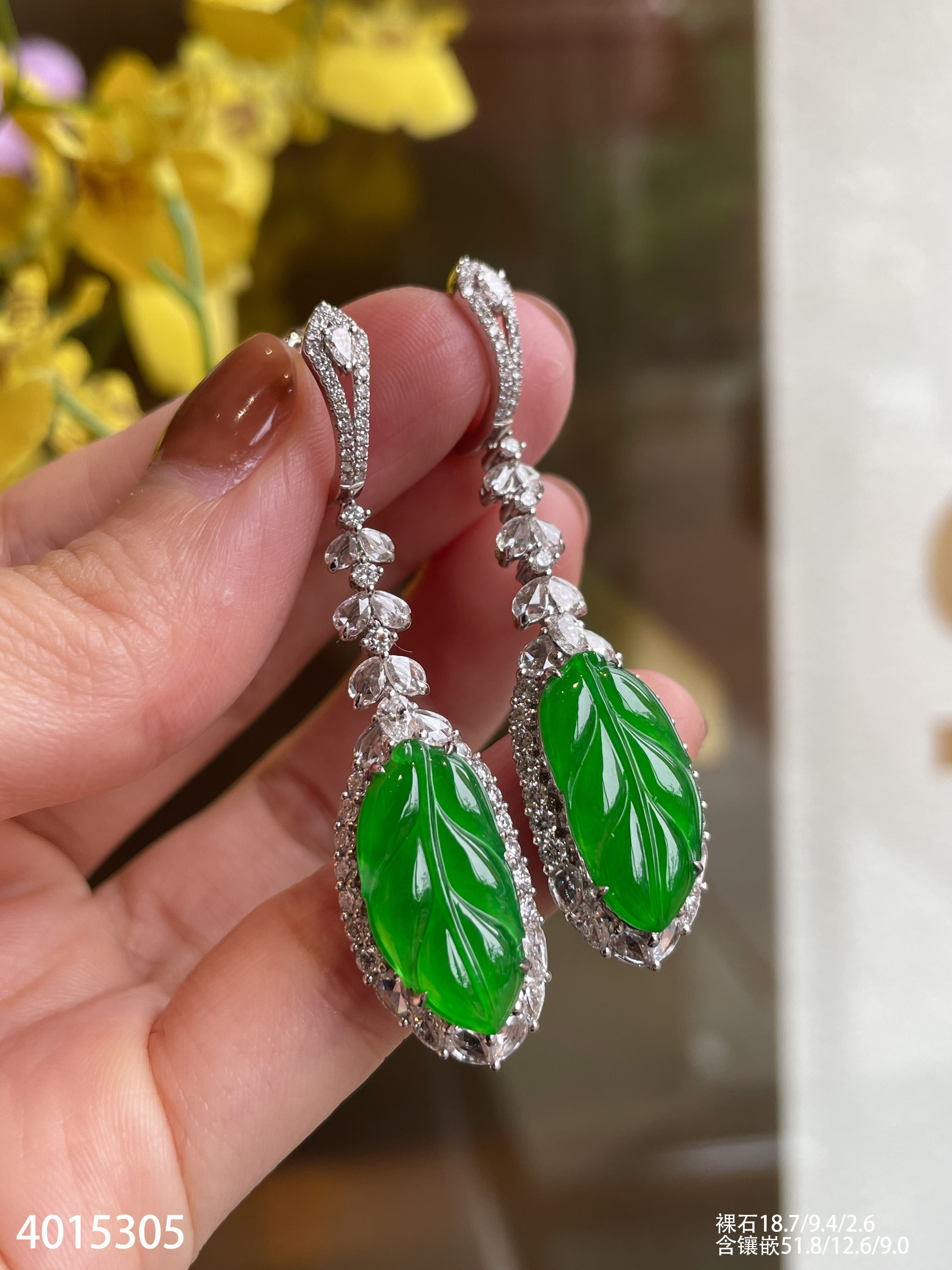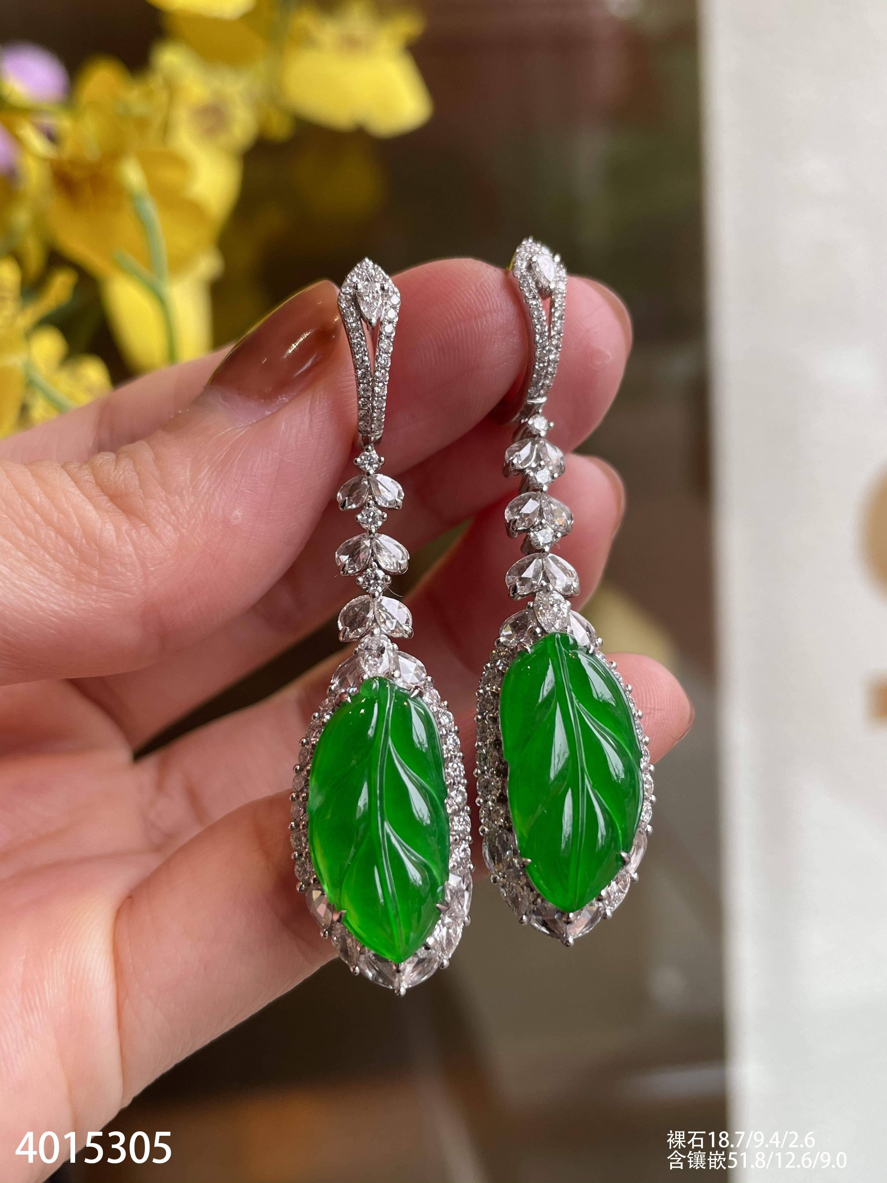 老坑玻璃种艳绿叶子耳坠【4015305】具体价格微信咨询