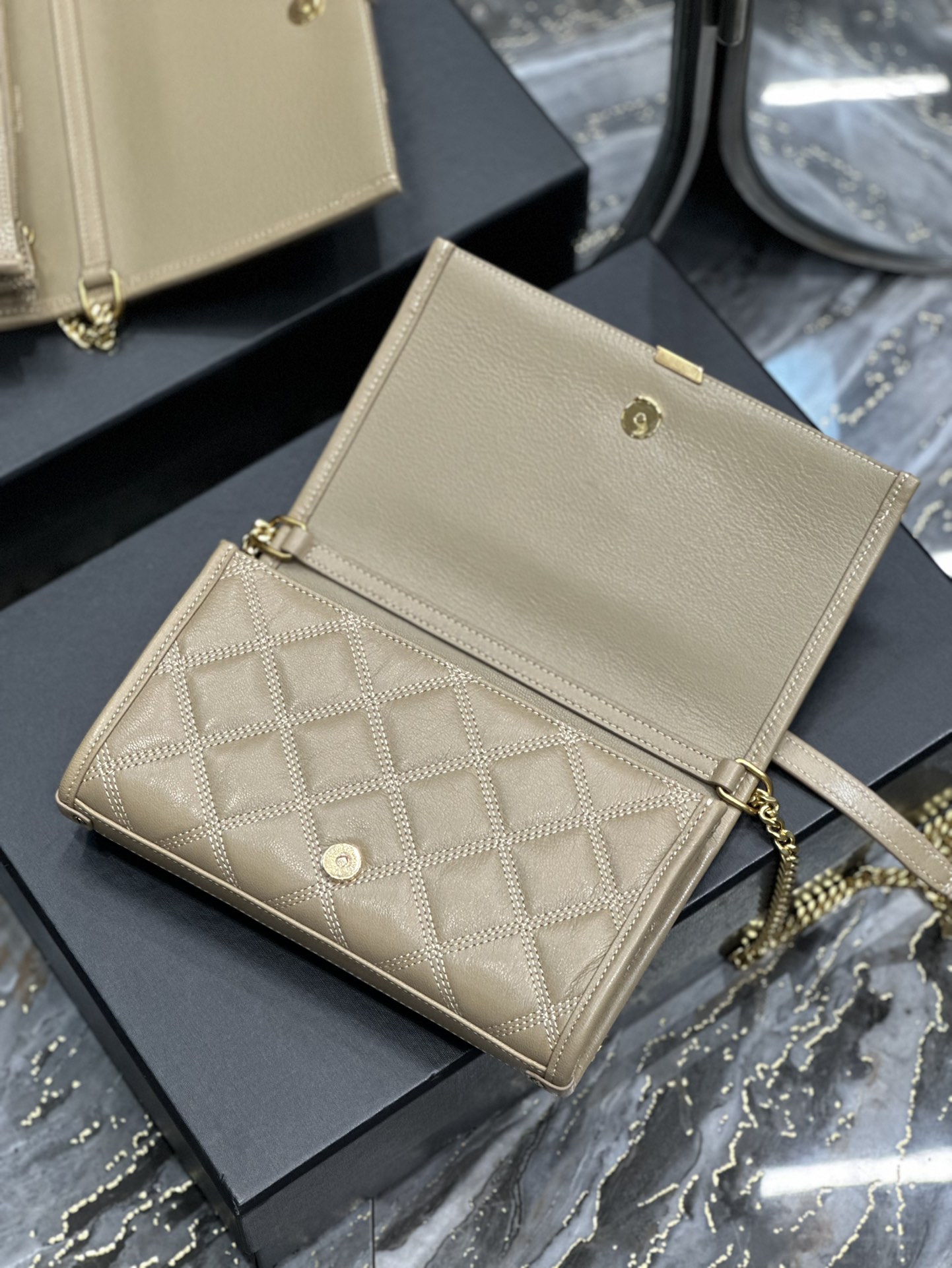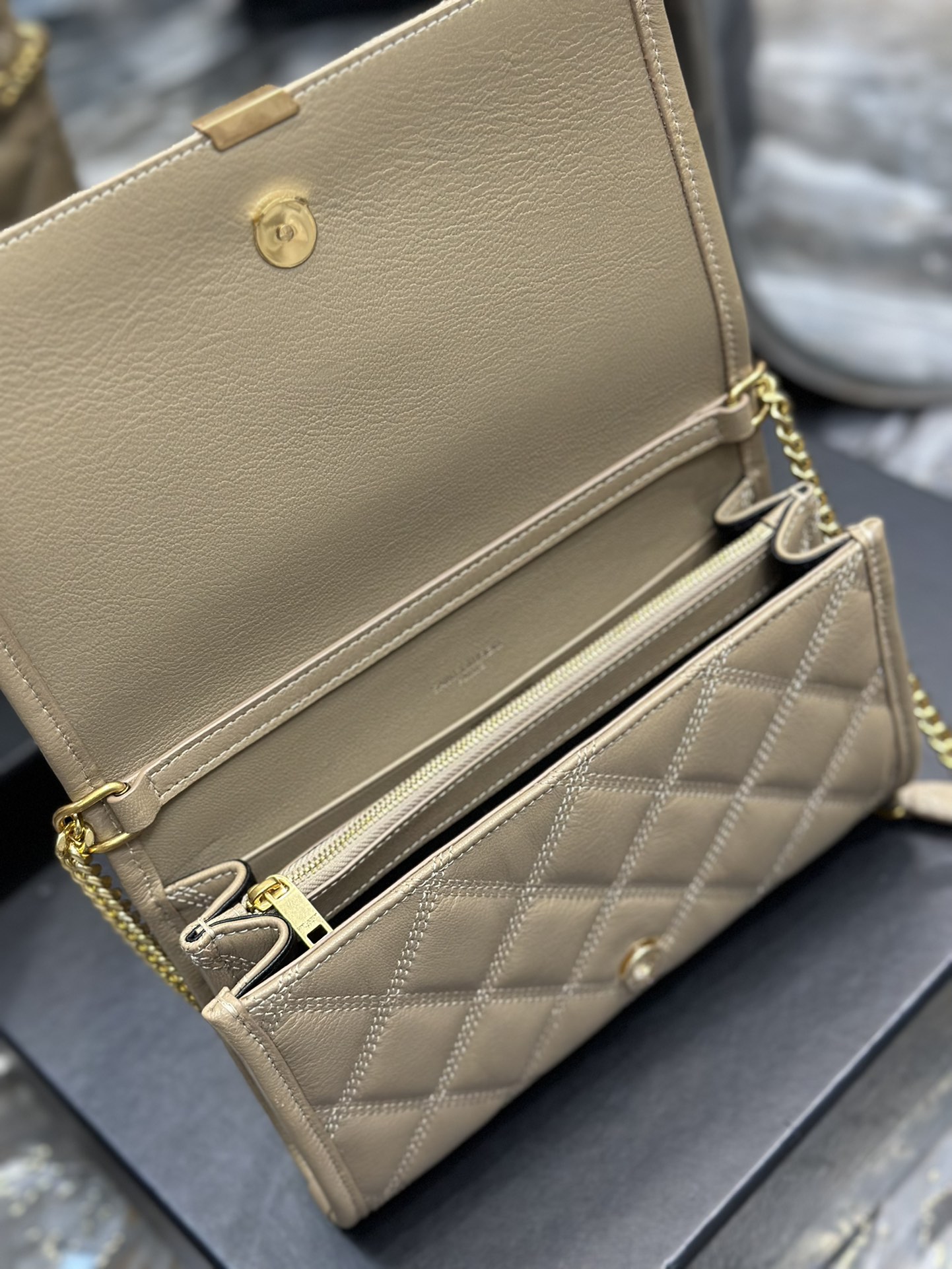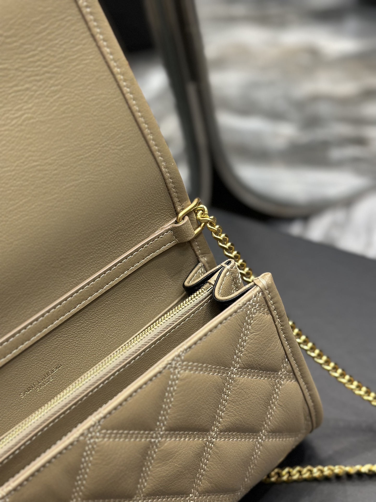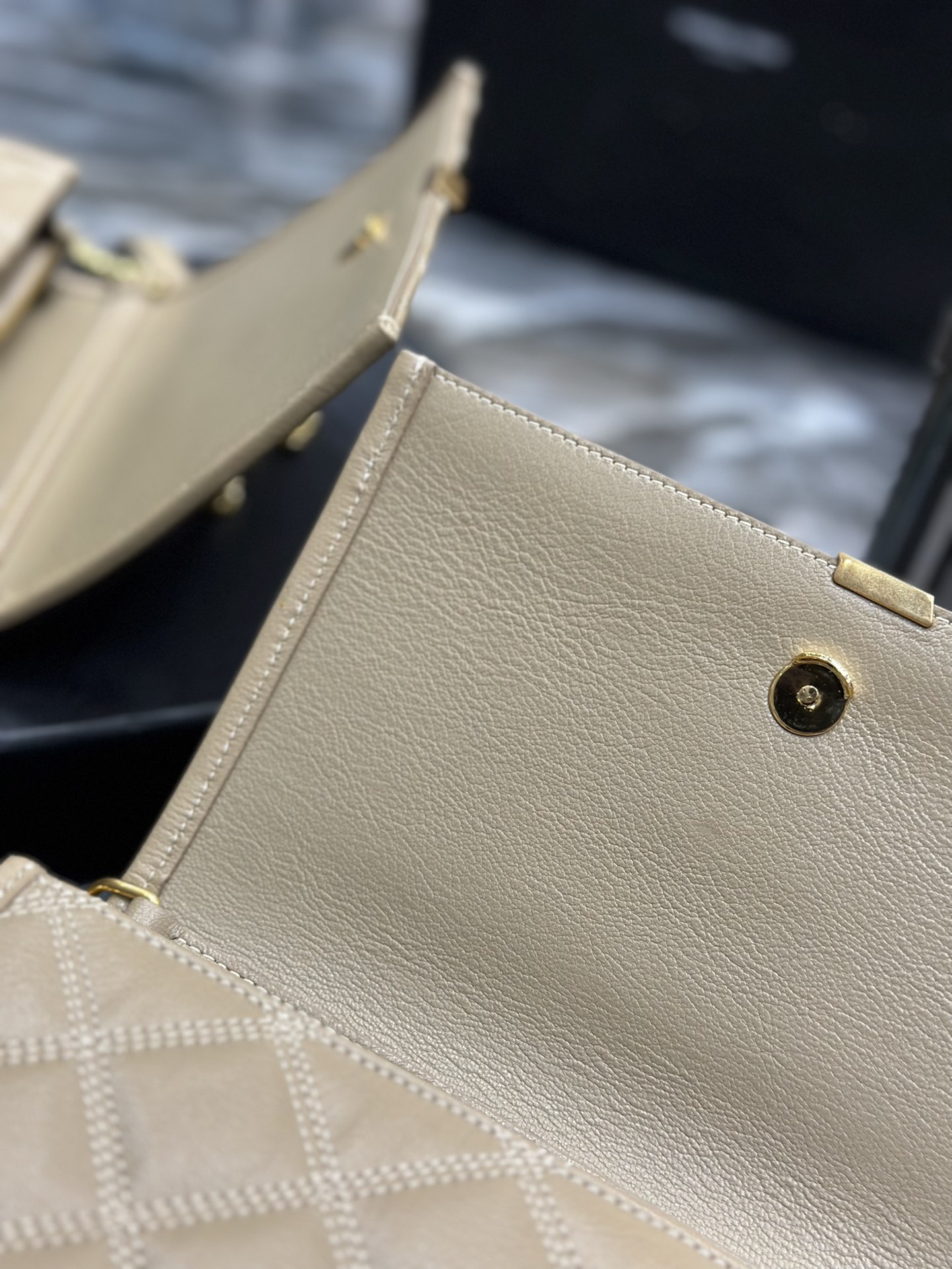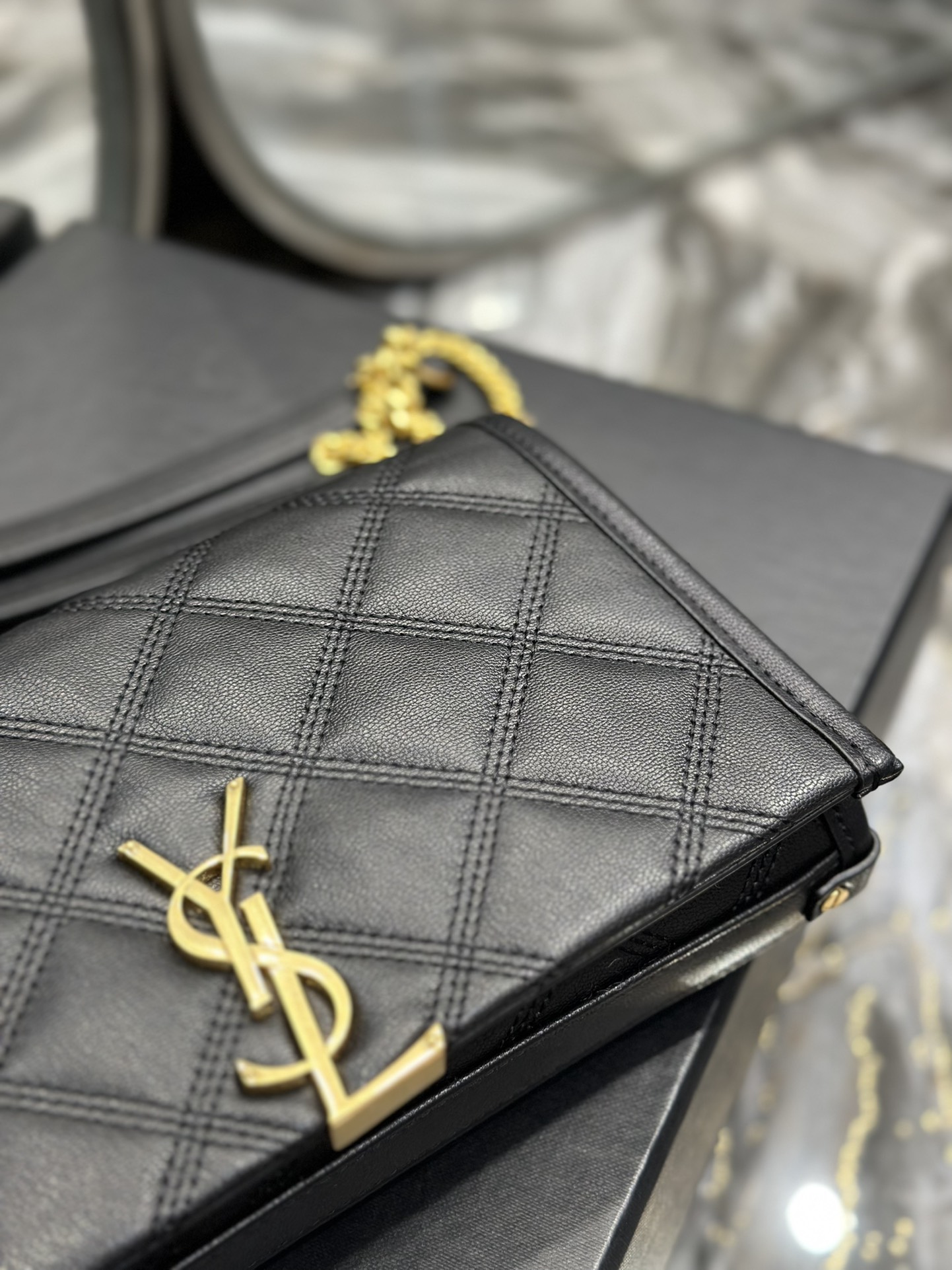 菱形的绗缝纹路散发钻石般的迷人光彩!金色Y家标志很醒目,流畅的菱格纹线条,柔软的羔羊皮触感舒服极了。