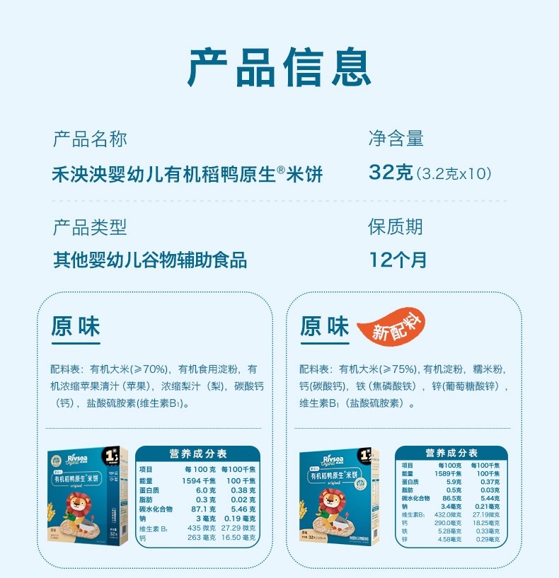 禾泱泱婴幼儿稻鸭原生米饼类合集32g/盒