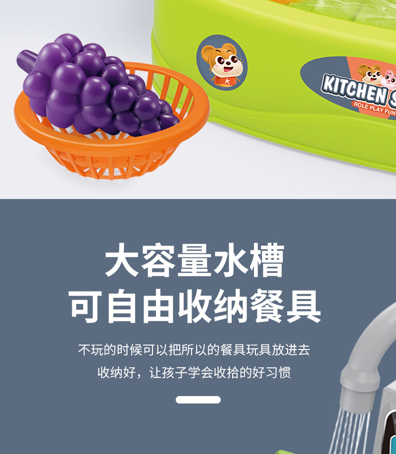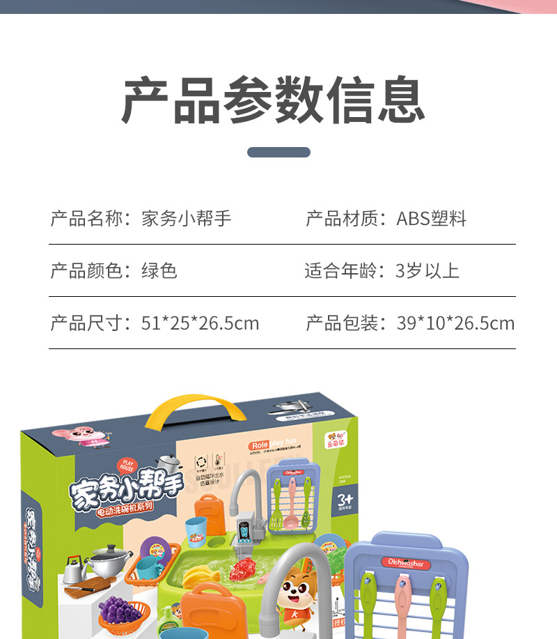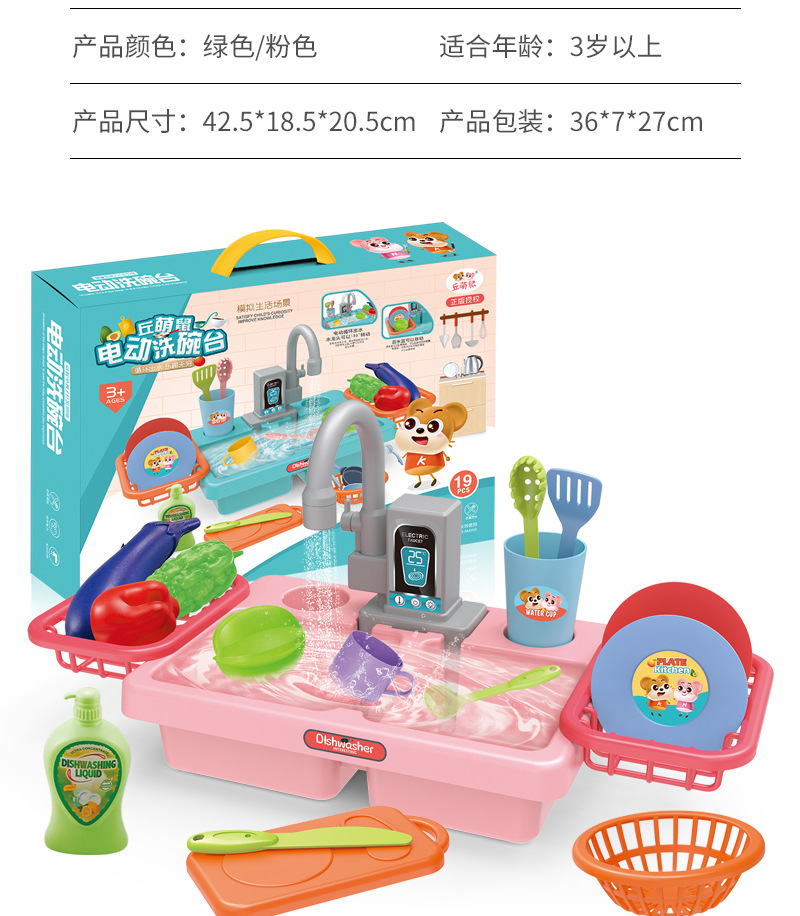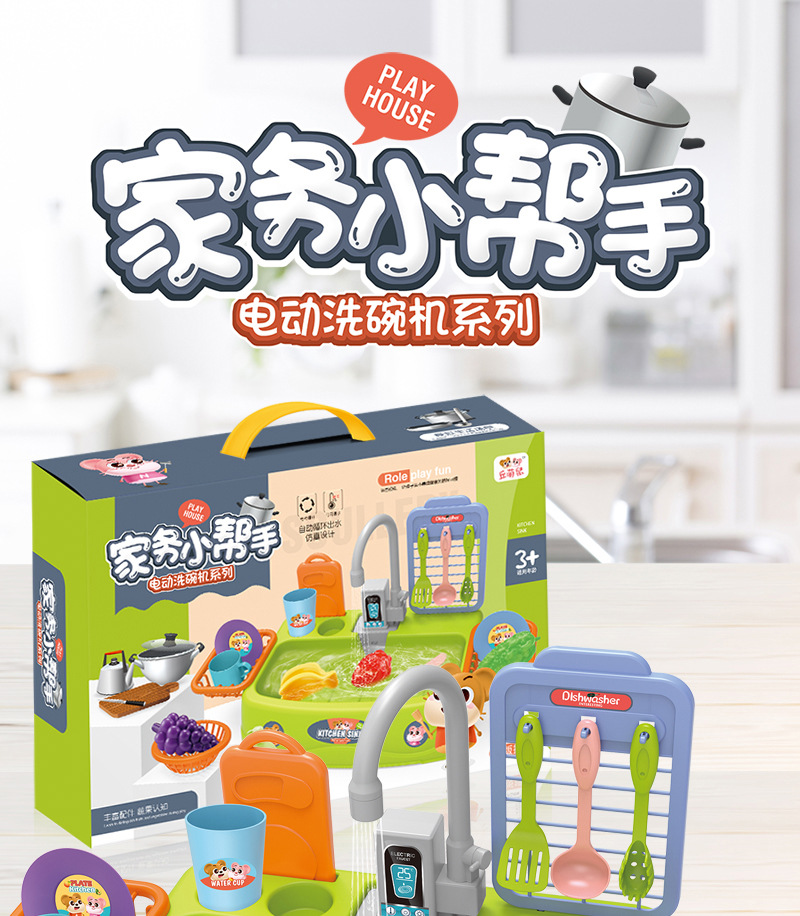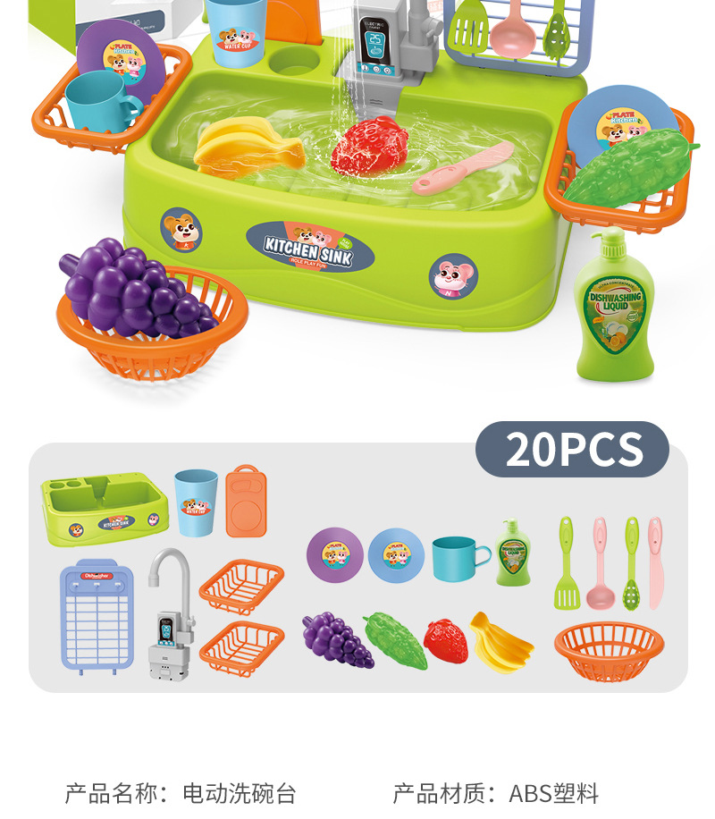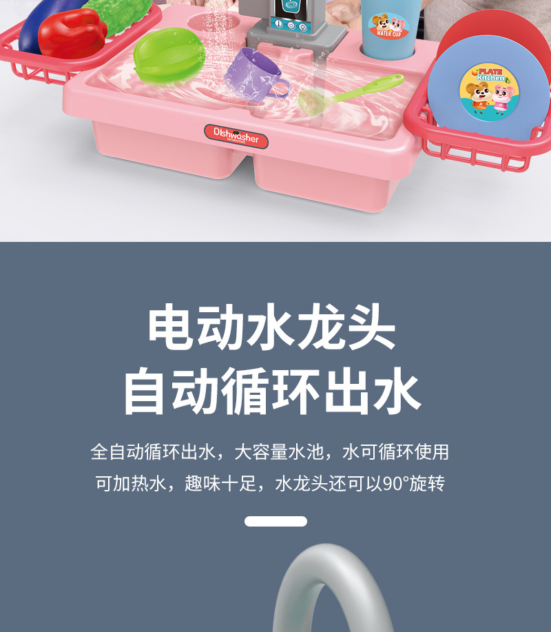 【家务小帮手 电动出水洗碗台】儿童过家家仿真洗碗机玩具 早教厨房仿真电动洗碗台出水洗菜玩具