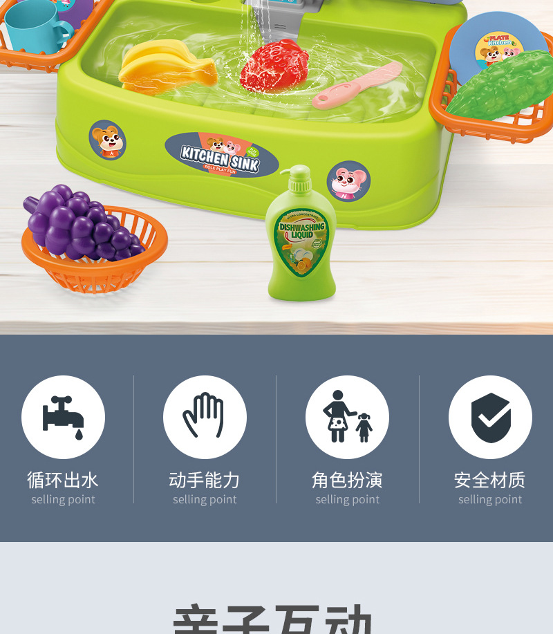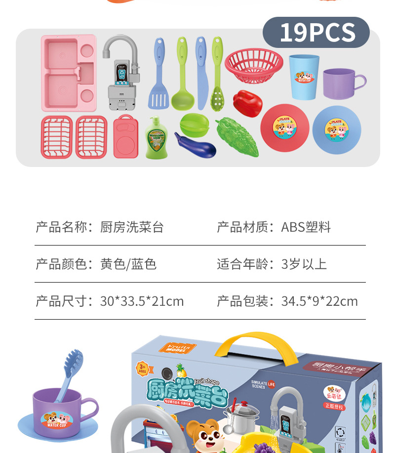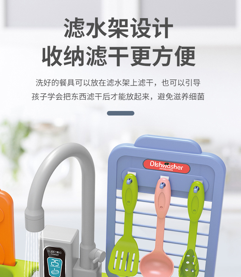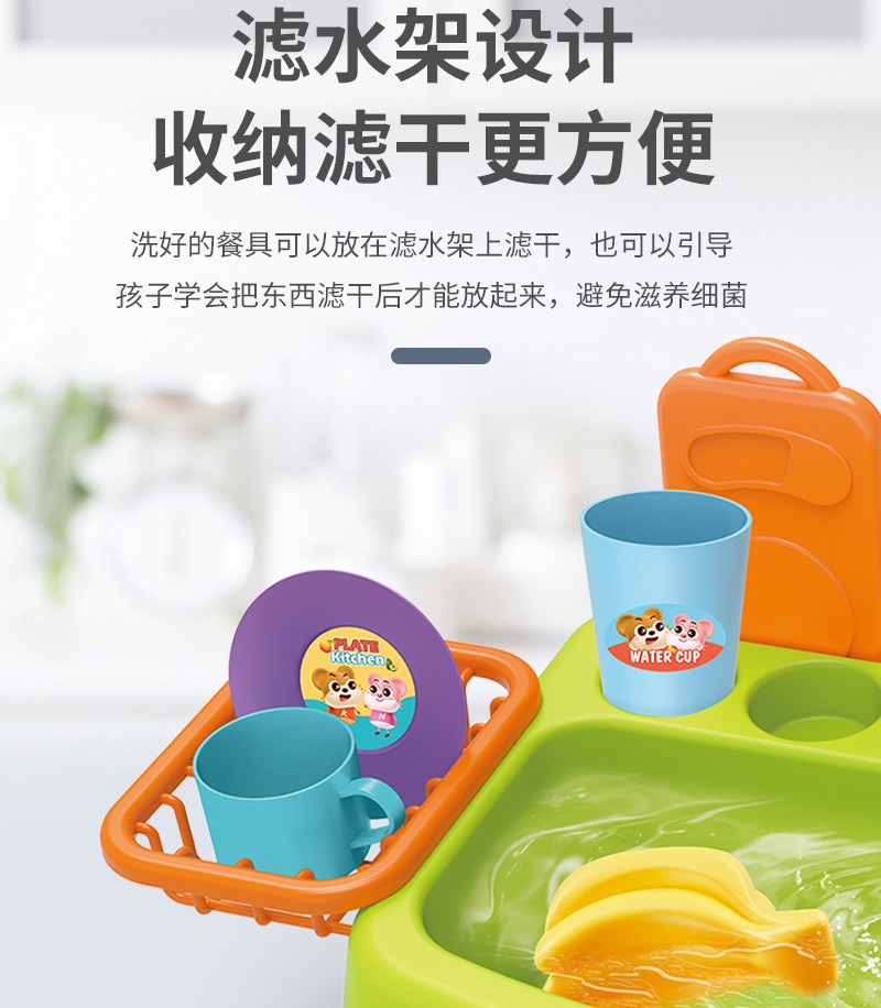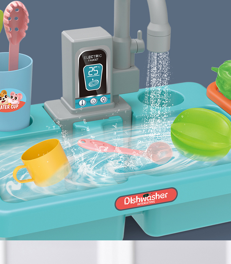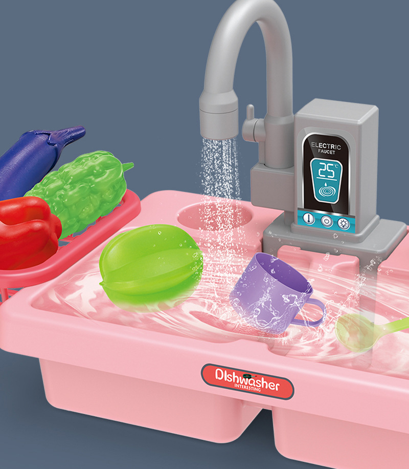 【家务小帮手 电动出水洗碗台】儿童过家家仿真洗碗机玩具 早教厨房仿真电动洗碗台出水洗菜玩具
